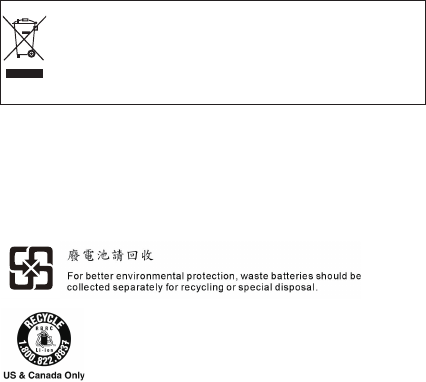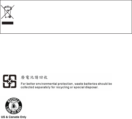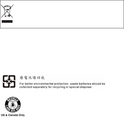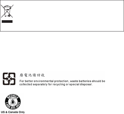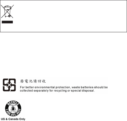 Endurvinnsluupplýsingar rafhlöðu fyrir Bandaríkin og Kanada