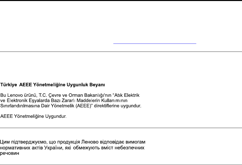 The Lenovo product meets the requirements of the Republic of Turkey Directive on the Restriction of the Use