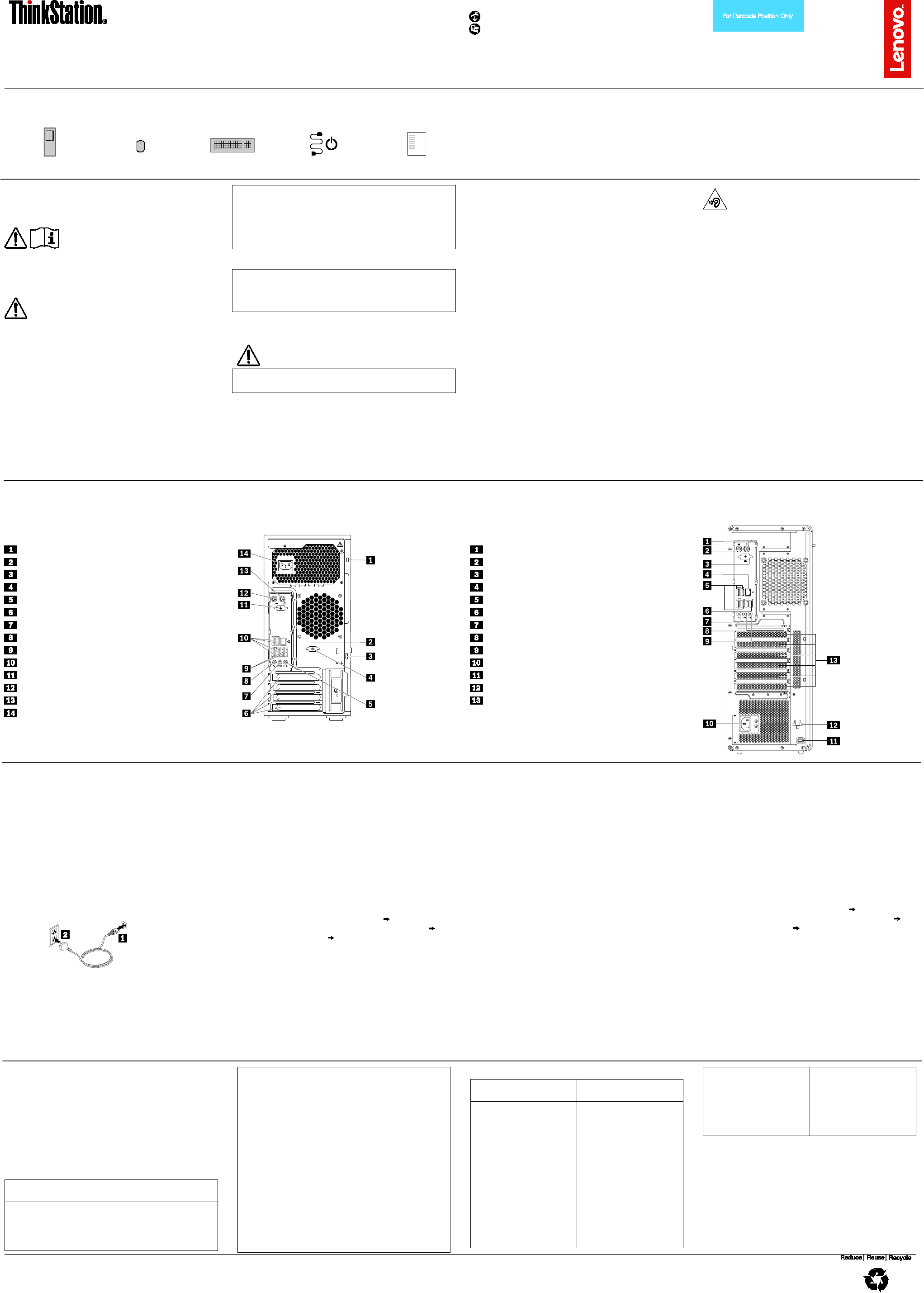 User Manual: Lenovo (Turkish) Safety, Warranty and Setup Guide - ThinkStation P520, P520c P520c Workstation (ThinkStation) - Type 30BY 30BY