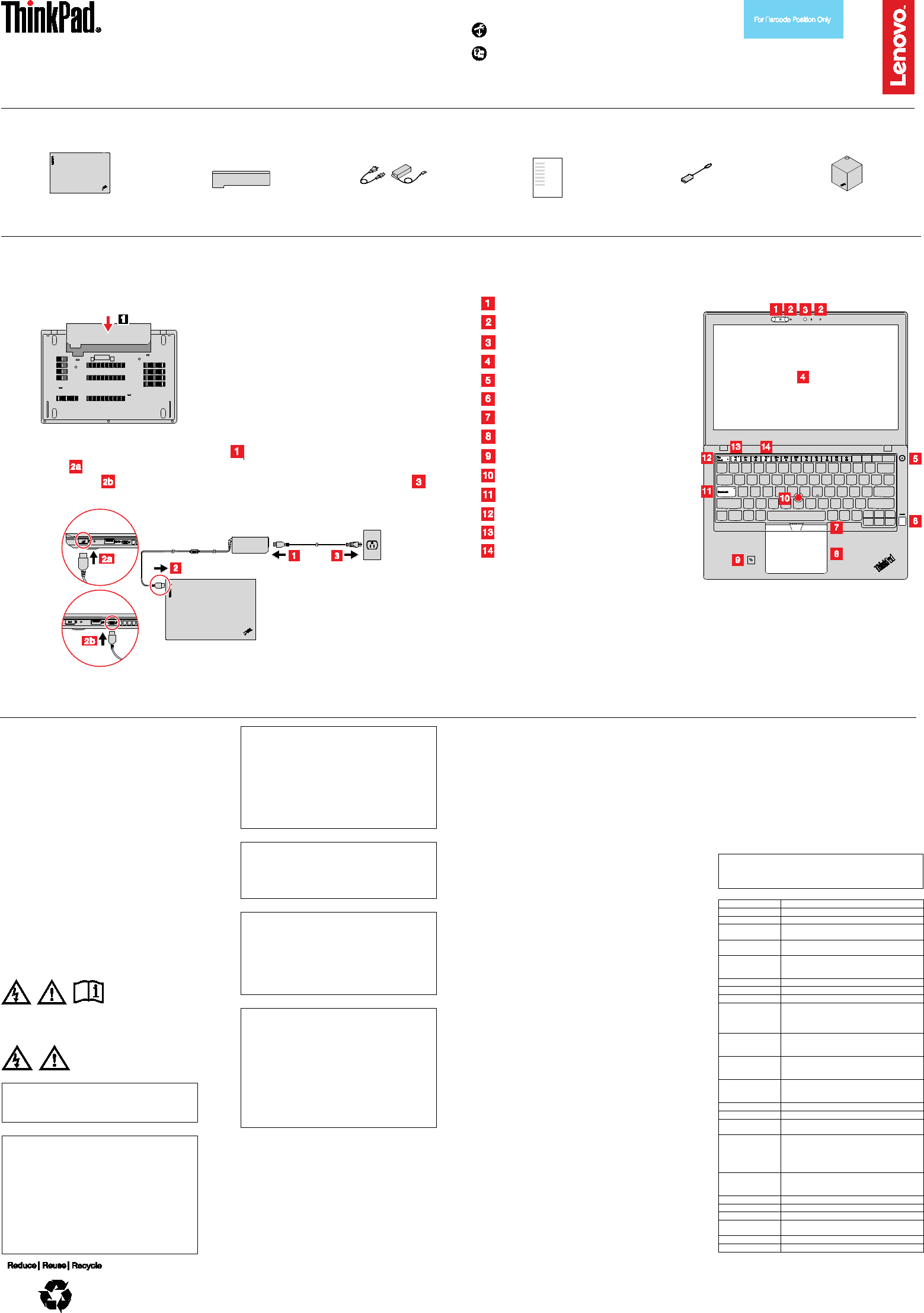 User Manual: Lenovo (English) Safety, Warranty and Setup Guide - ThinkPad T470 T470 (Type 20HD, 20HE) Laptop (ThinkPad) ThinkPad T470 Laptop (Type 20HD, 20HE)