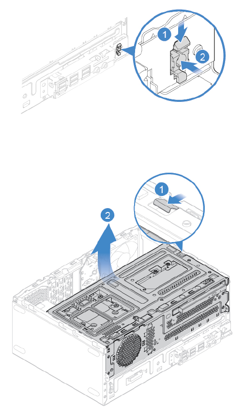4. Pivot the drive bay assembly upward. See “Pivoting the drive bay assembly upward and downward” on