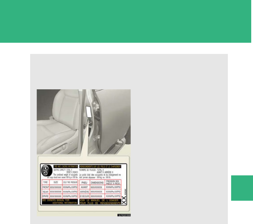 Cold tire inflation pressure P. 702