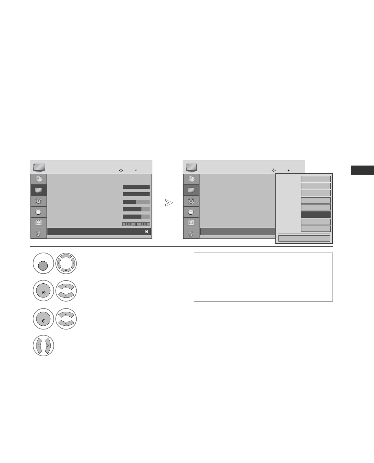 - ON SCREEN MENUS SELECTION AND ADJUSTMENT