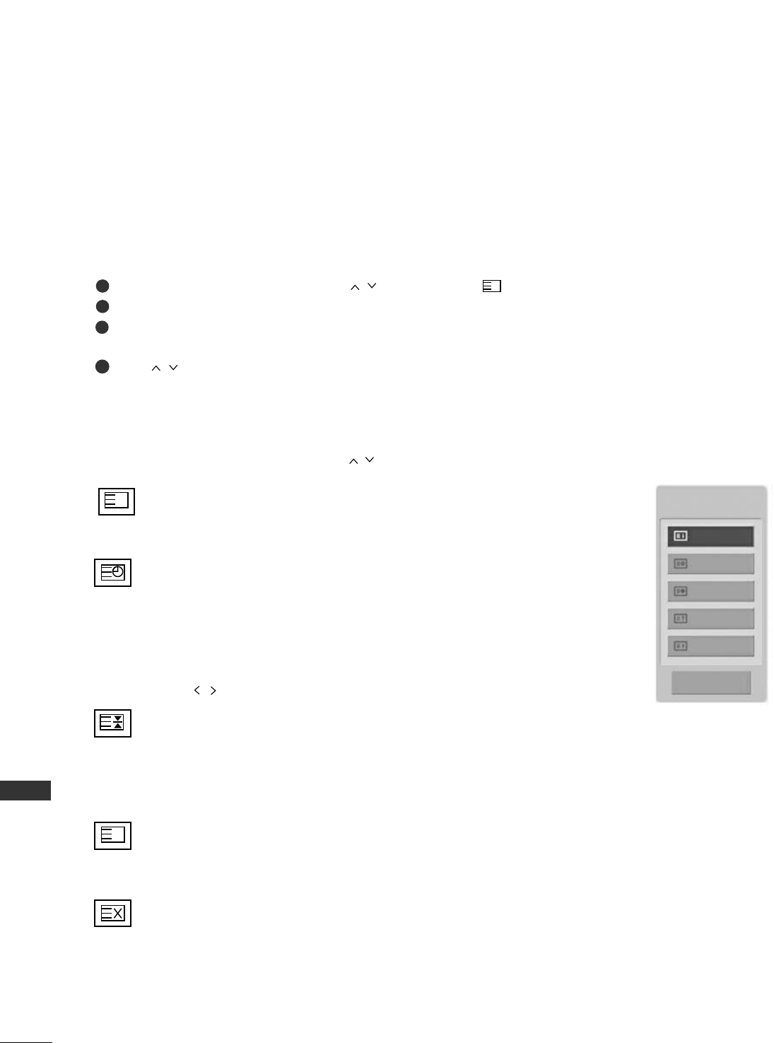 - ON SCREEN MENUS SELECTION AND ADJUSTMENT