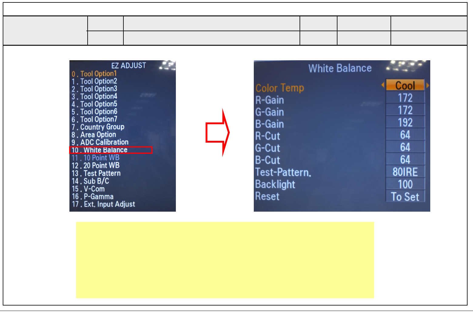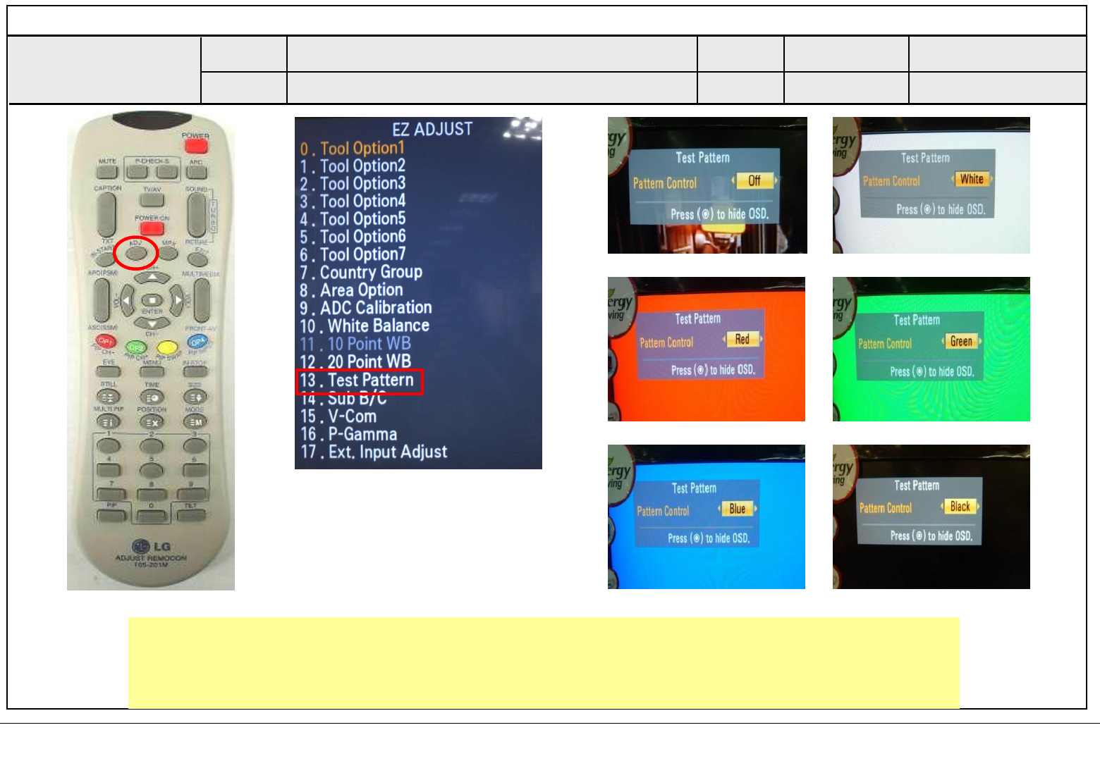 ■ As pushing the right or the left button on the remote controller, And find the V-COM value Which is no or minimized the Flicker.