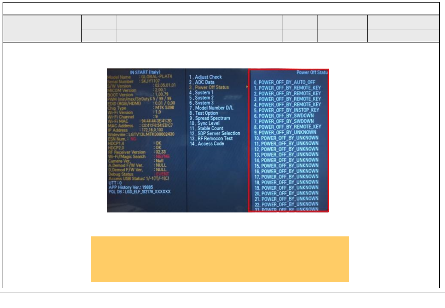 POWER OFF MODE checking method