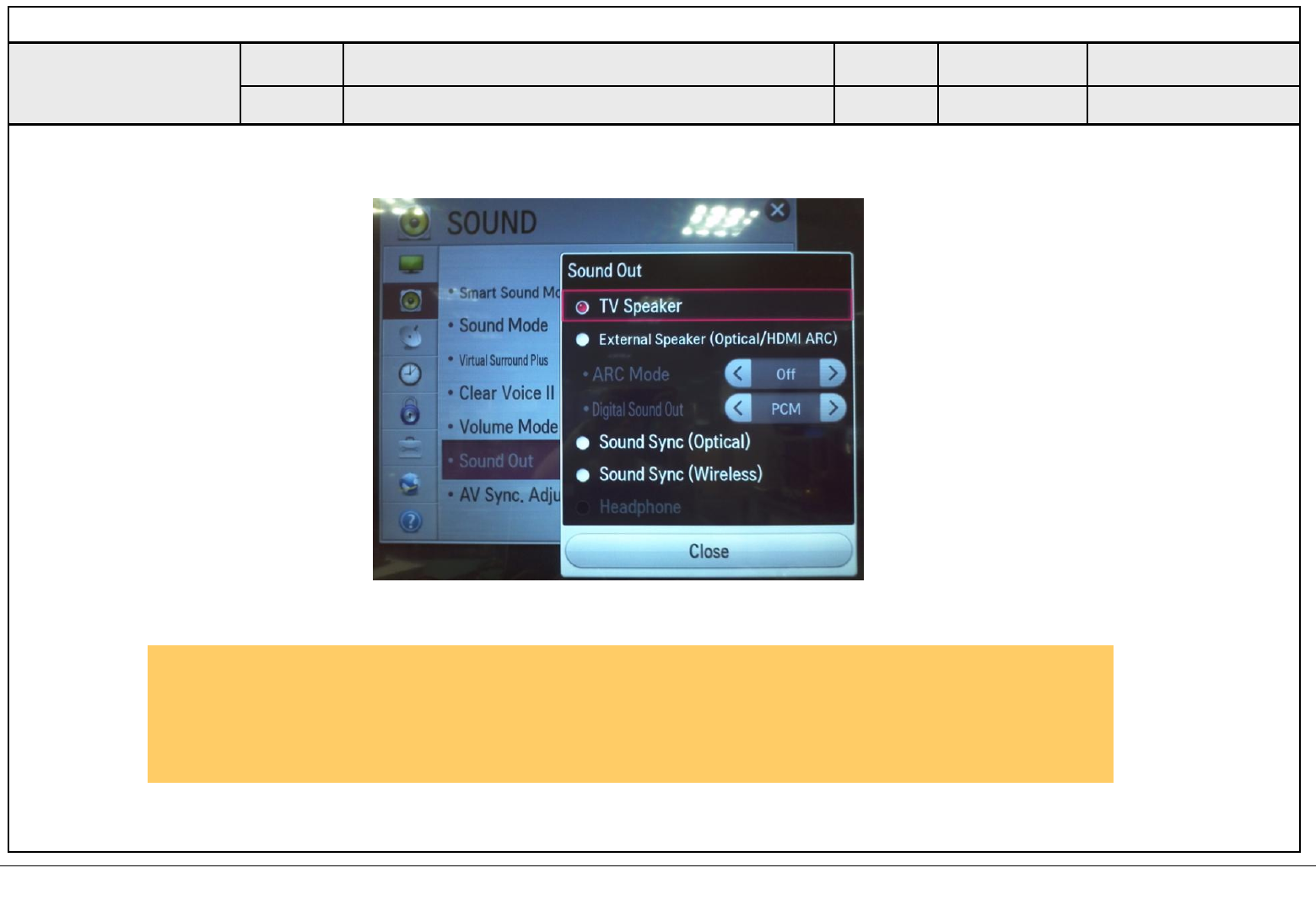 3. Change TV Sound Out to TV Speaker