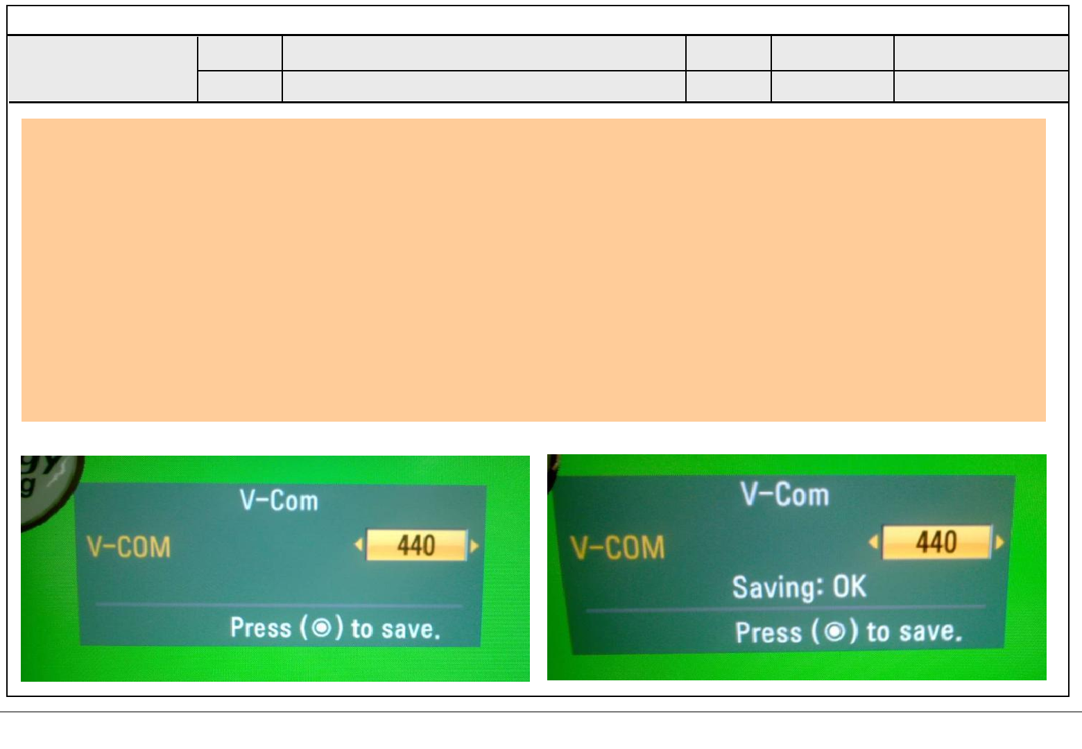 Sequence of the Vcom adjustment