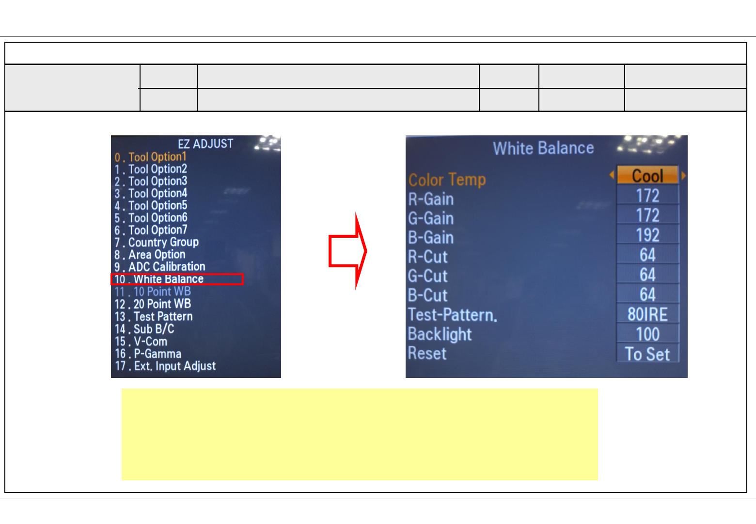 ■ As pushing the right or the left button on the remote controller, And find the V-COM value Which is no or minimized the Flicker.