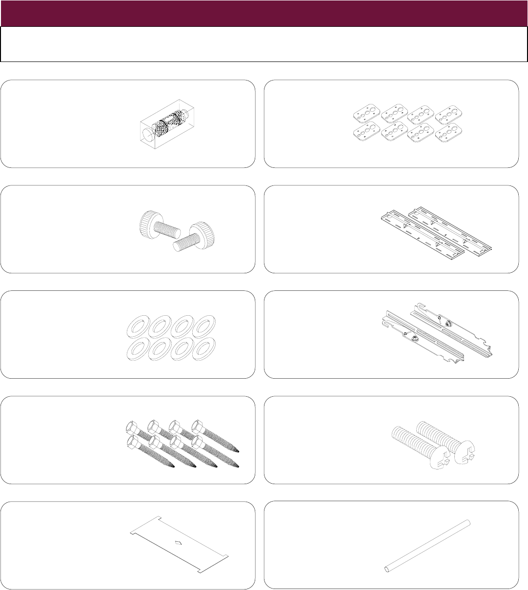 concrete wedge anchors (commercially available). or a minimum diameter of 5/16” x 3” lg wood screws.