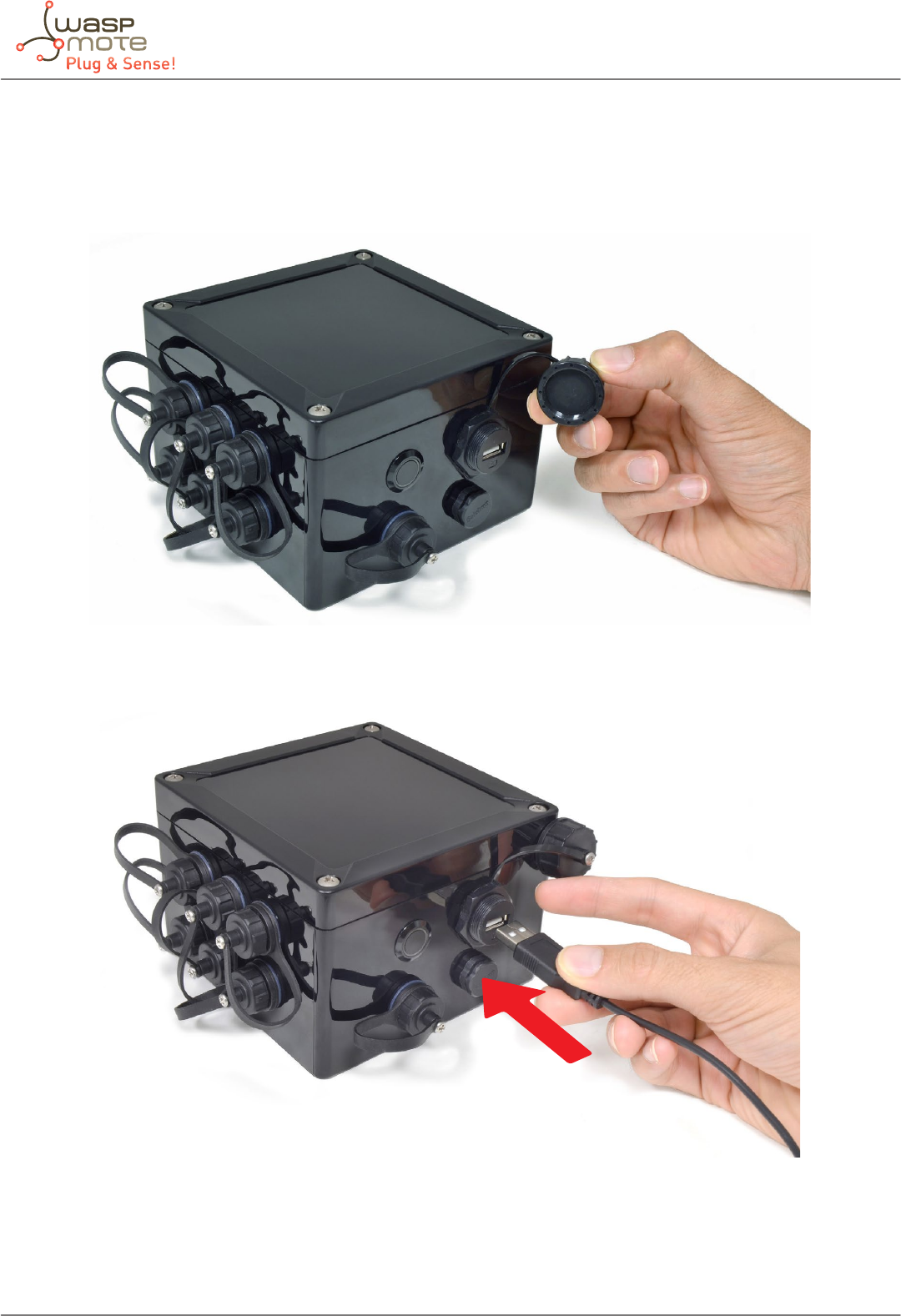Figure : Connecting the USB cable to Waspmote Plug & Sense!