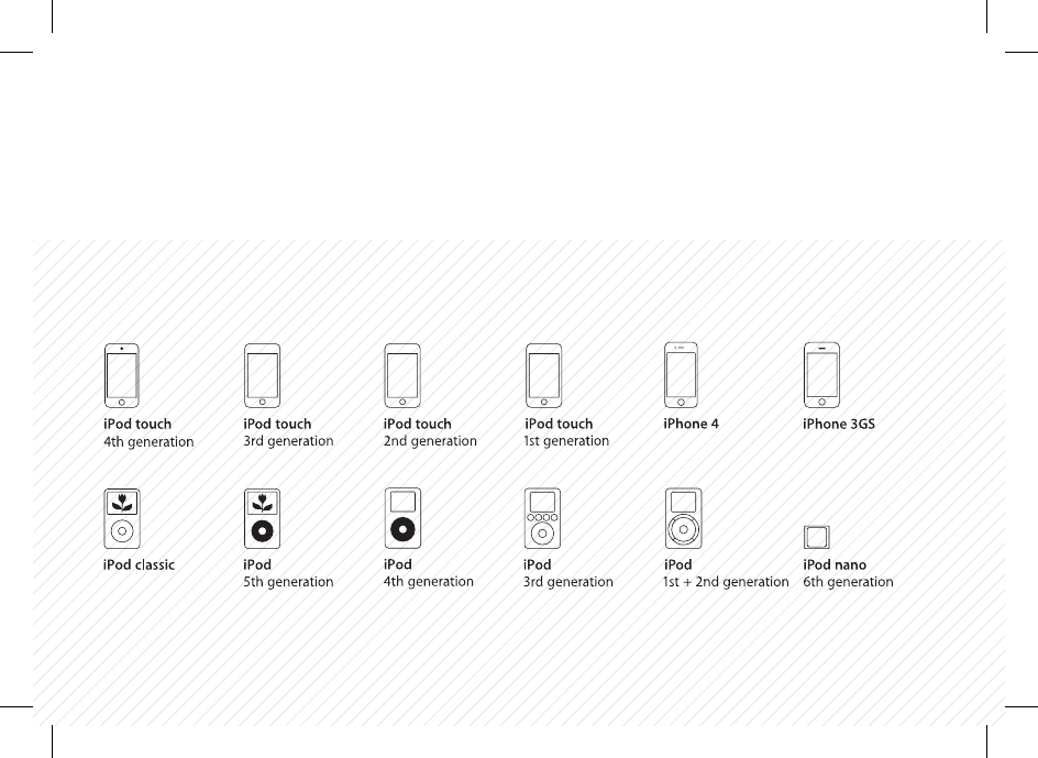 iPhone, iPod, iPod classic, iPod nano and iPod touch are trademarks of Apple Inc., registered in the U.S. and other countries.