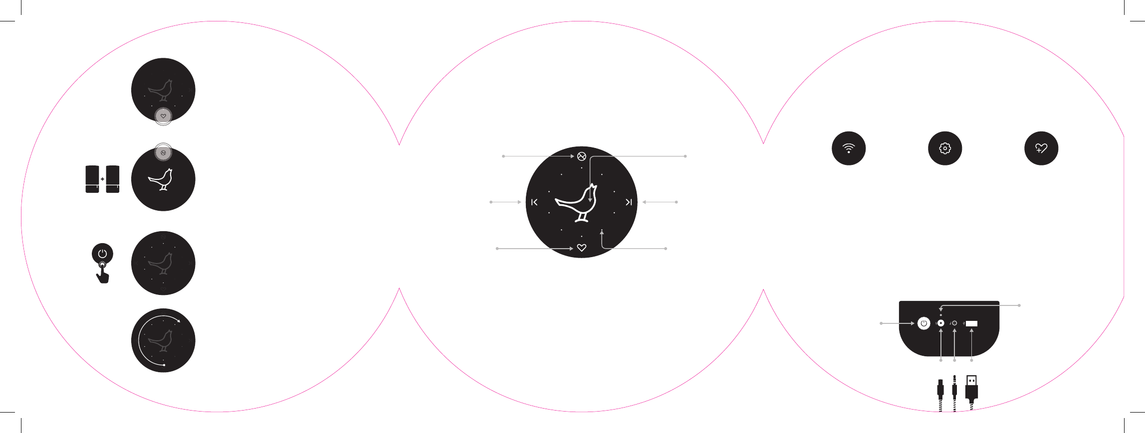 Press and hold the bird until LED’s light
