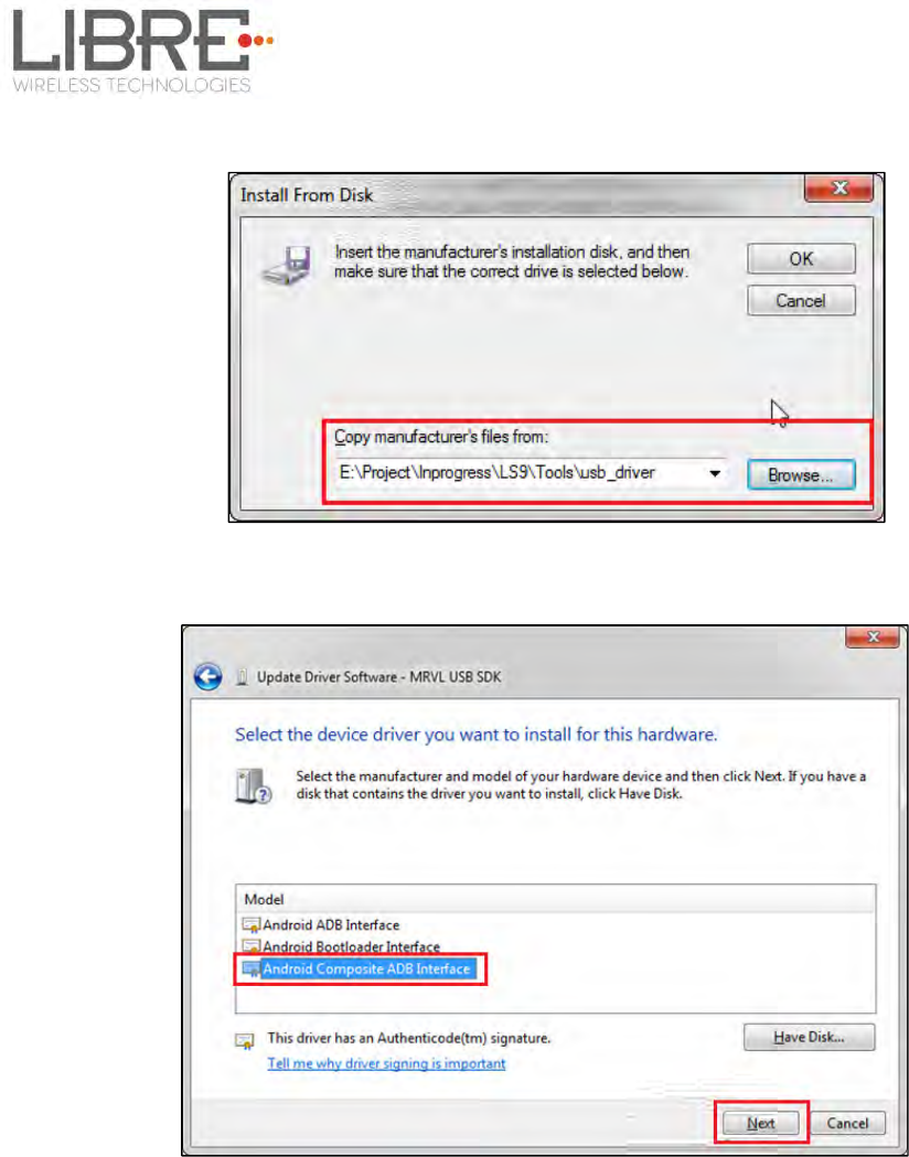 Go to Google USB driver file location and then select “OK”