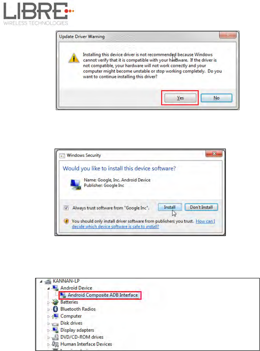 Click “Yes” on Update Driver Warning message then