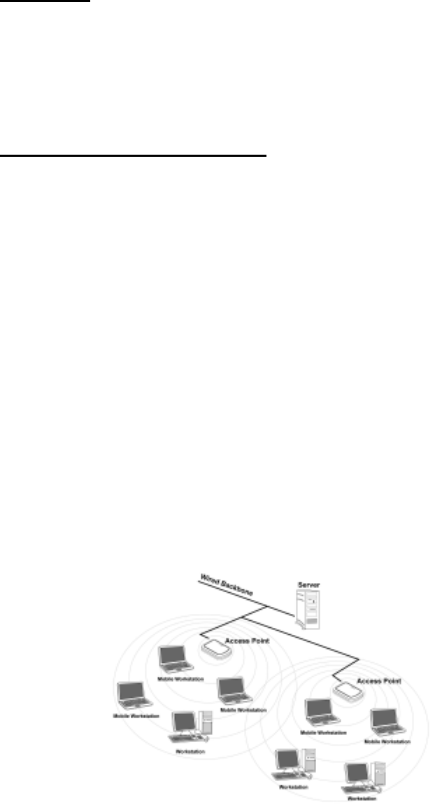 infrastructure mode, the wireless devices communicate with each other and to a wired