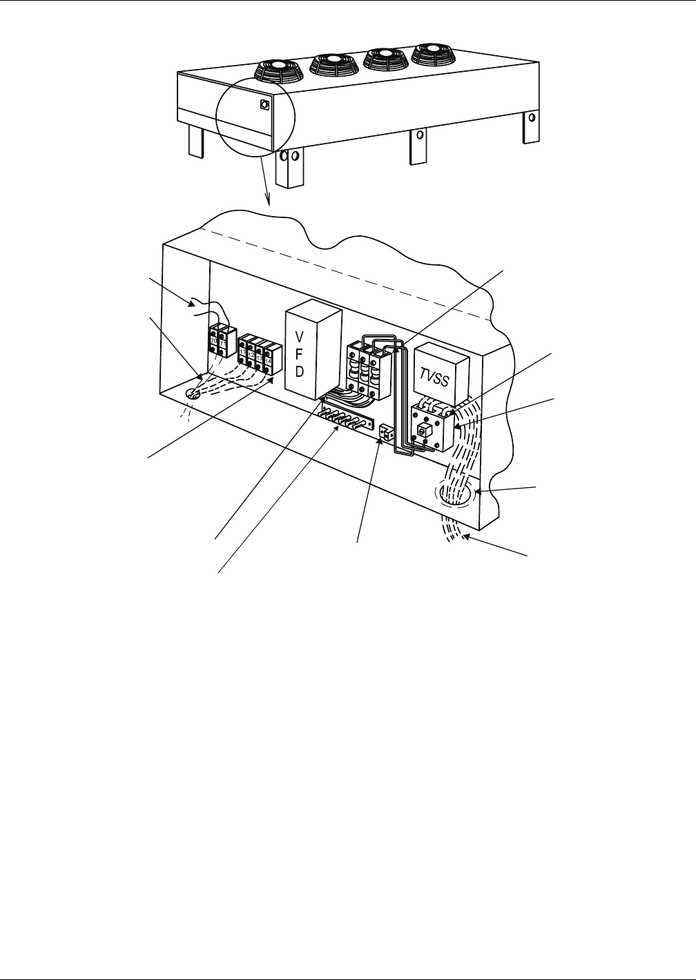 - Figure 7 Piping connection locations for 1-, 2-, 3- and 4-fan VFD Control and Fan Speed Condensers