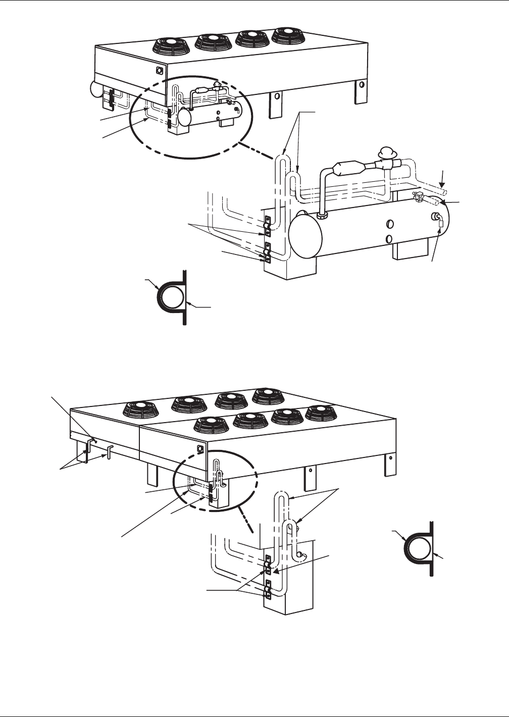 - Figure 9 Piping connections for 6- and 8-fan Fan Speed Condensers