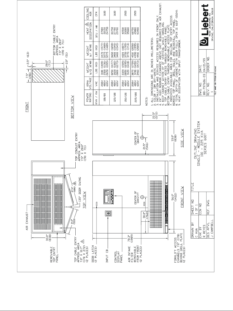 - Figure 13. Outline Drawing, 100 through 225 kVA Module with Standard Top & Bottom Entry