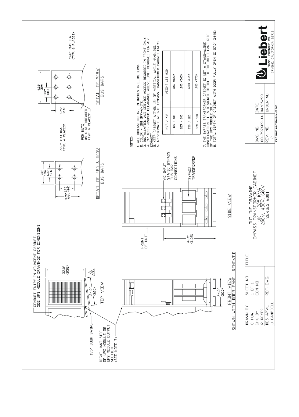 Liebert Series 600T UPS, 65-225 kVA, Single Module A-5