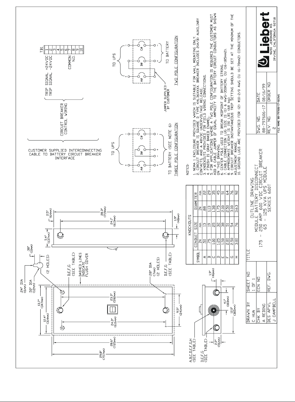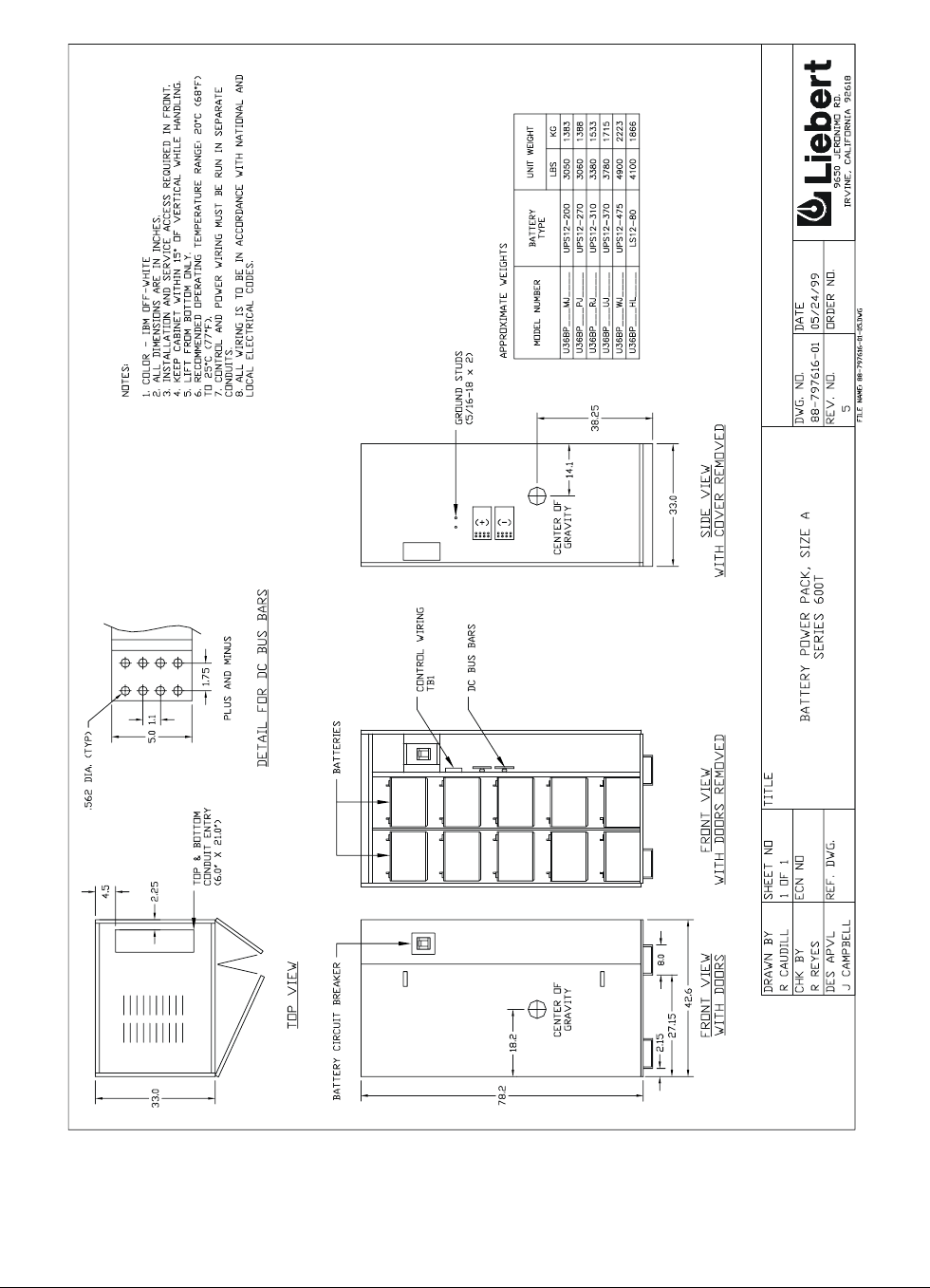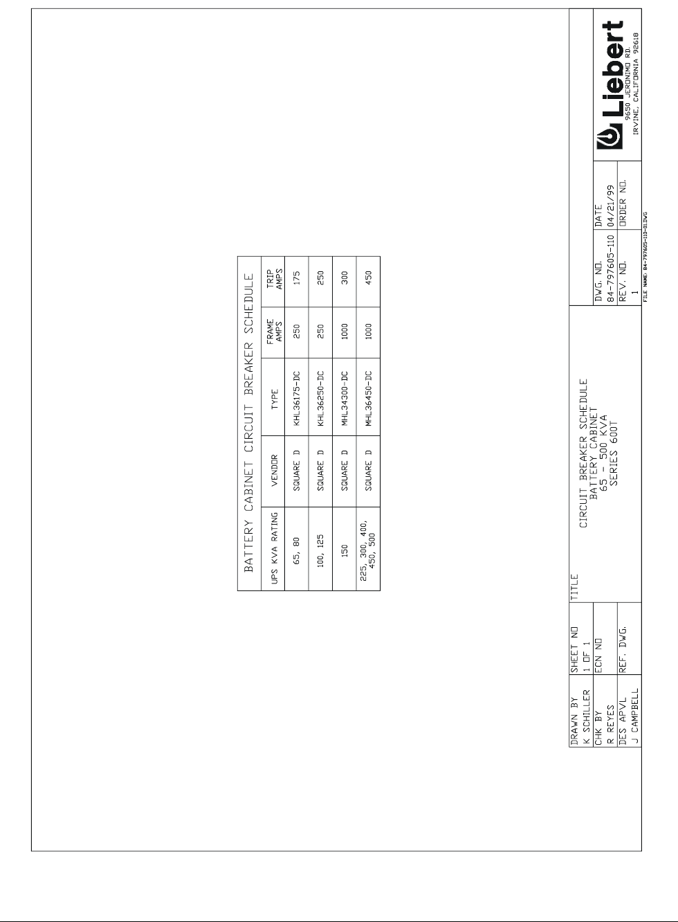- Figure 57. Circuit Breaker Schedule, Battery Cabinets, 65 to 500 kVA