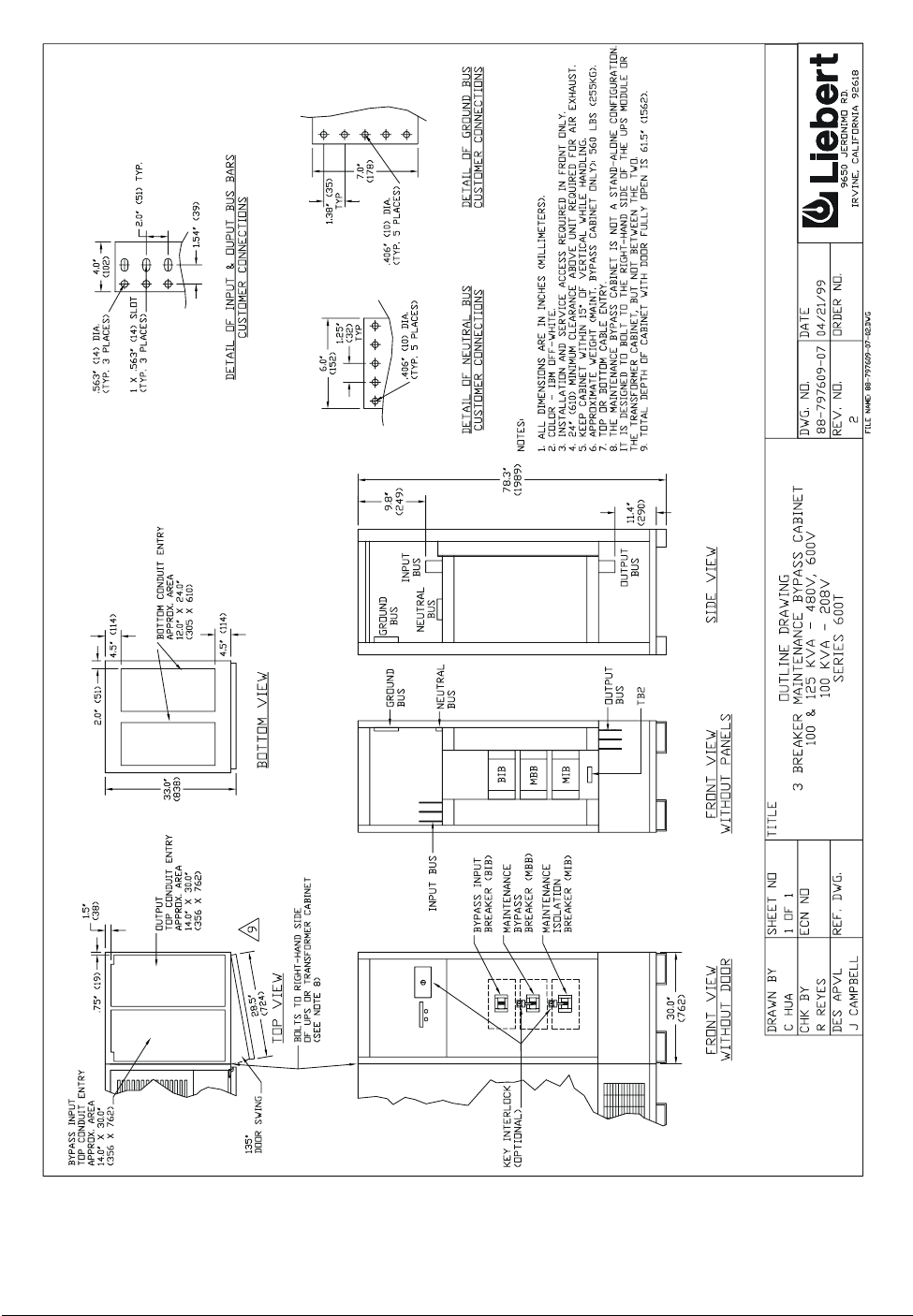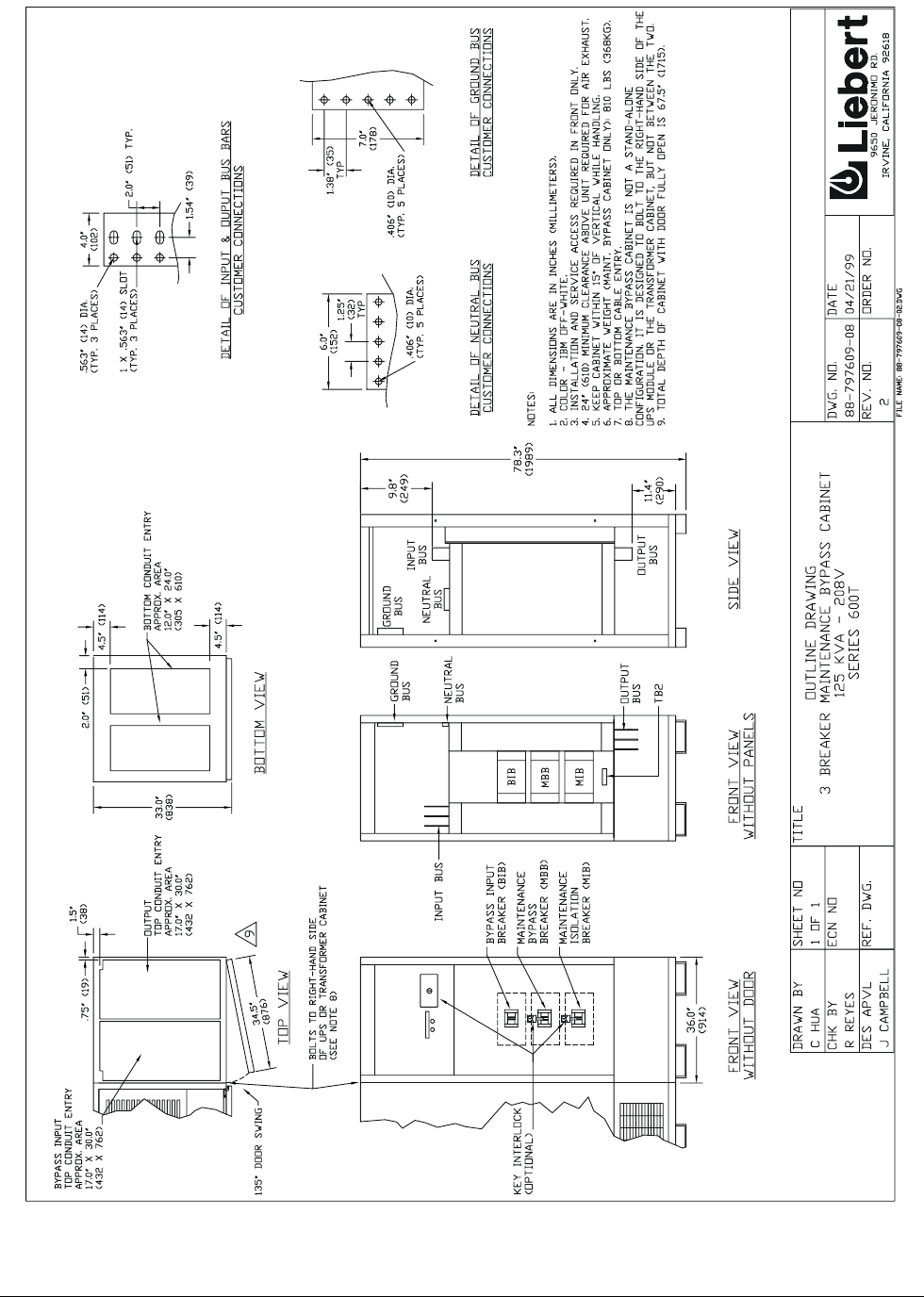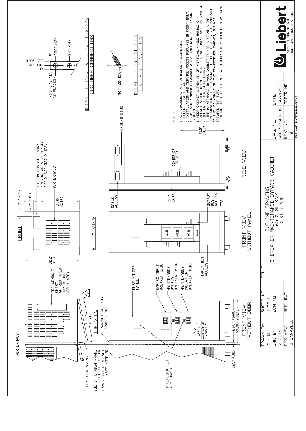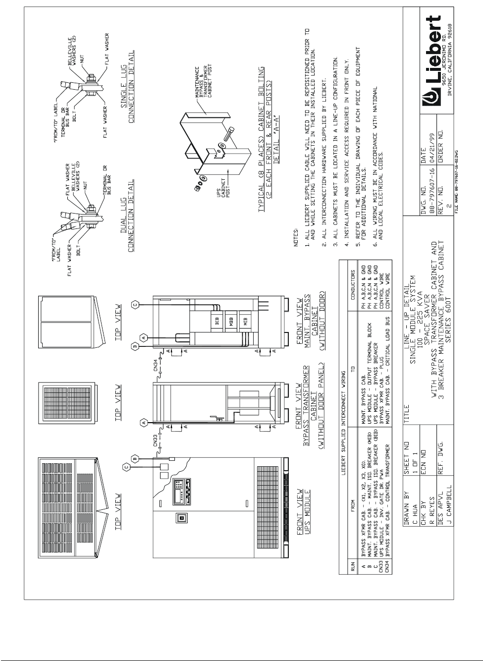 - Figure 32. Line-up Detail, 100-225 kVA Space Saver with Bypass Transformer Cabinet and 3-Breaker MBC