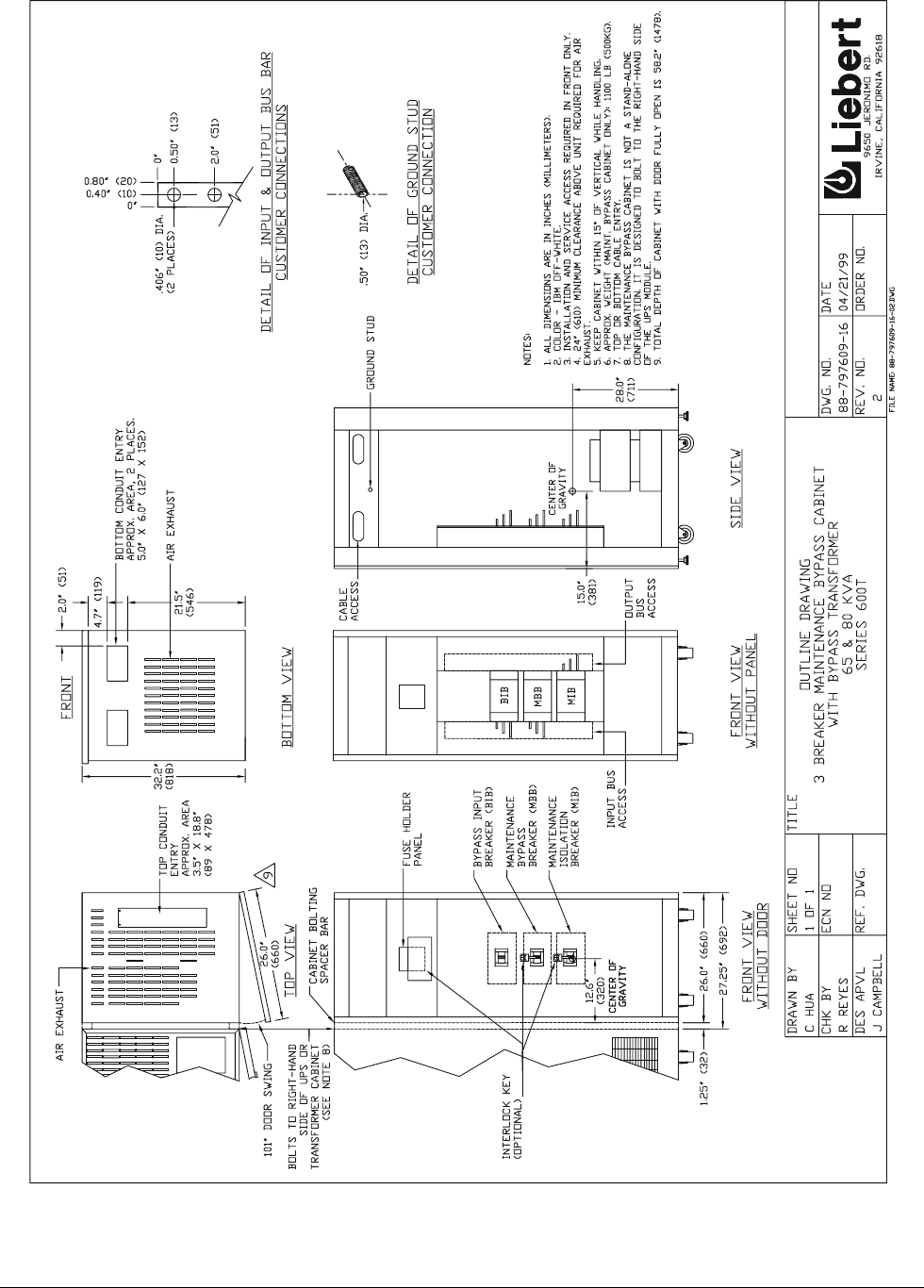 - Figure 19. Outline Drawing, 3-Breaker MBC with Bypass Transformer, 65 & 80 kVA