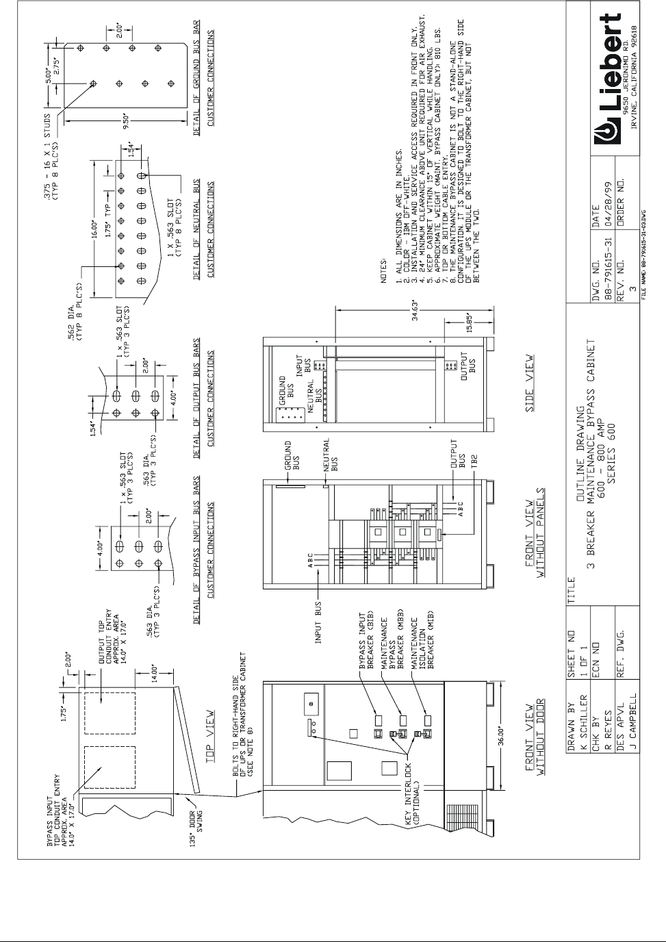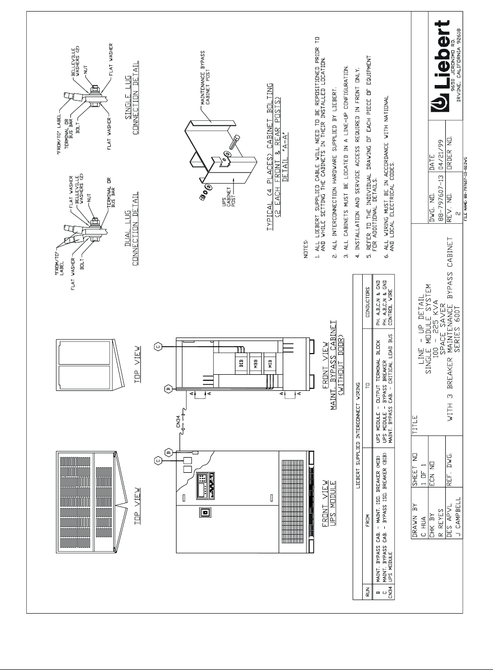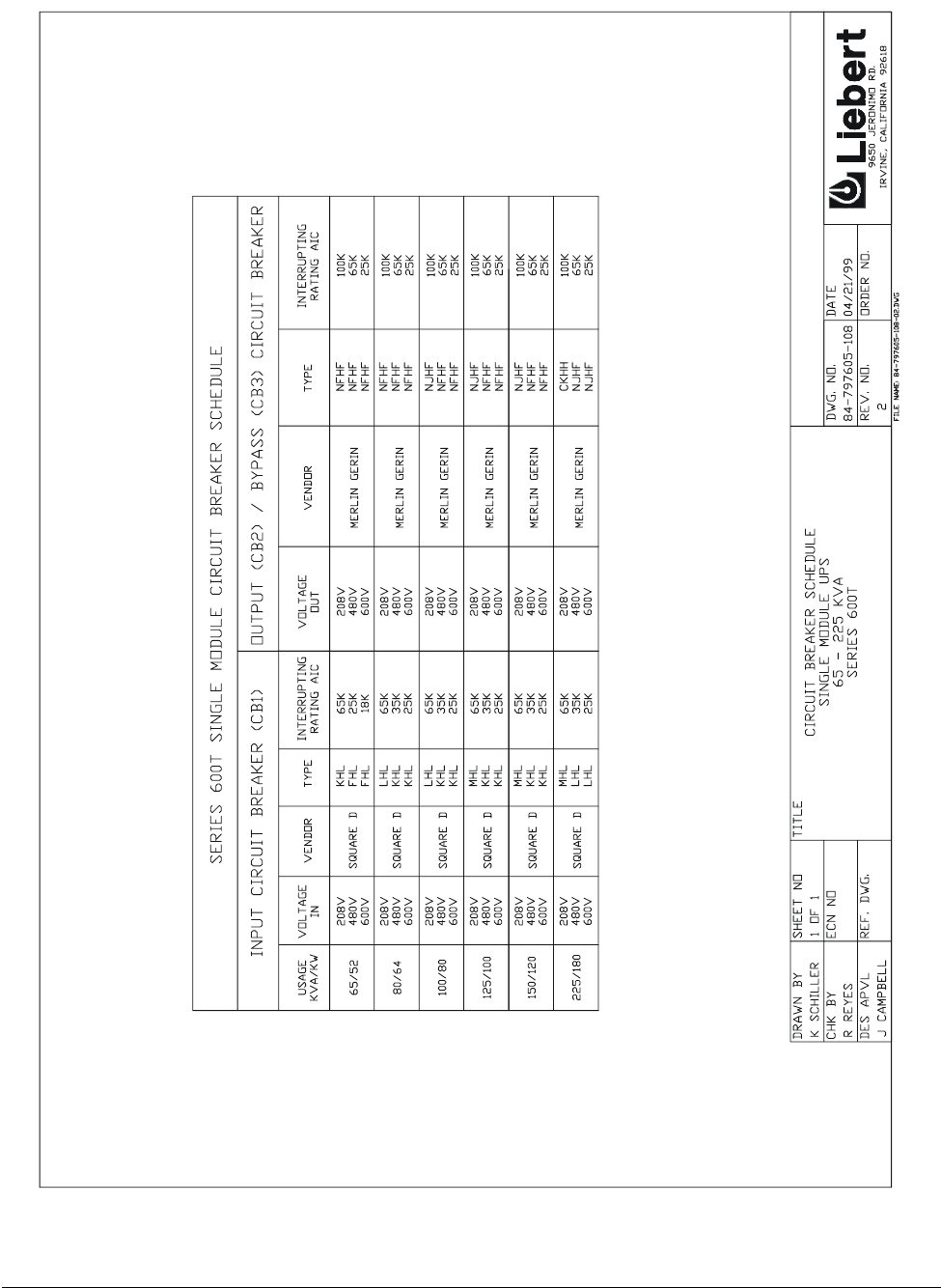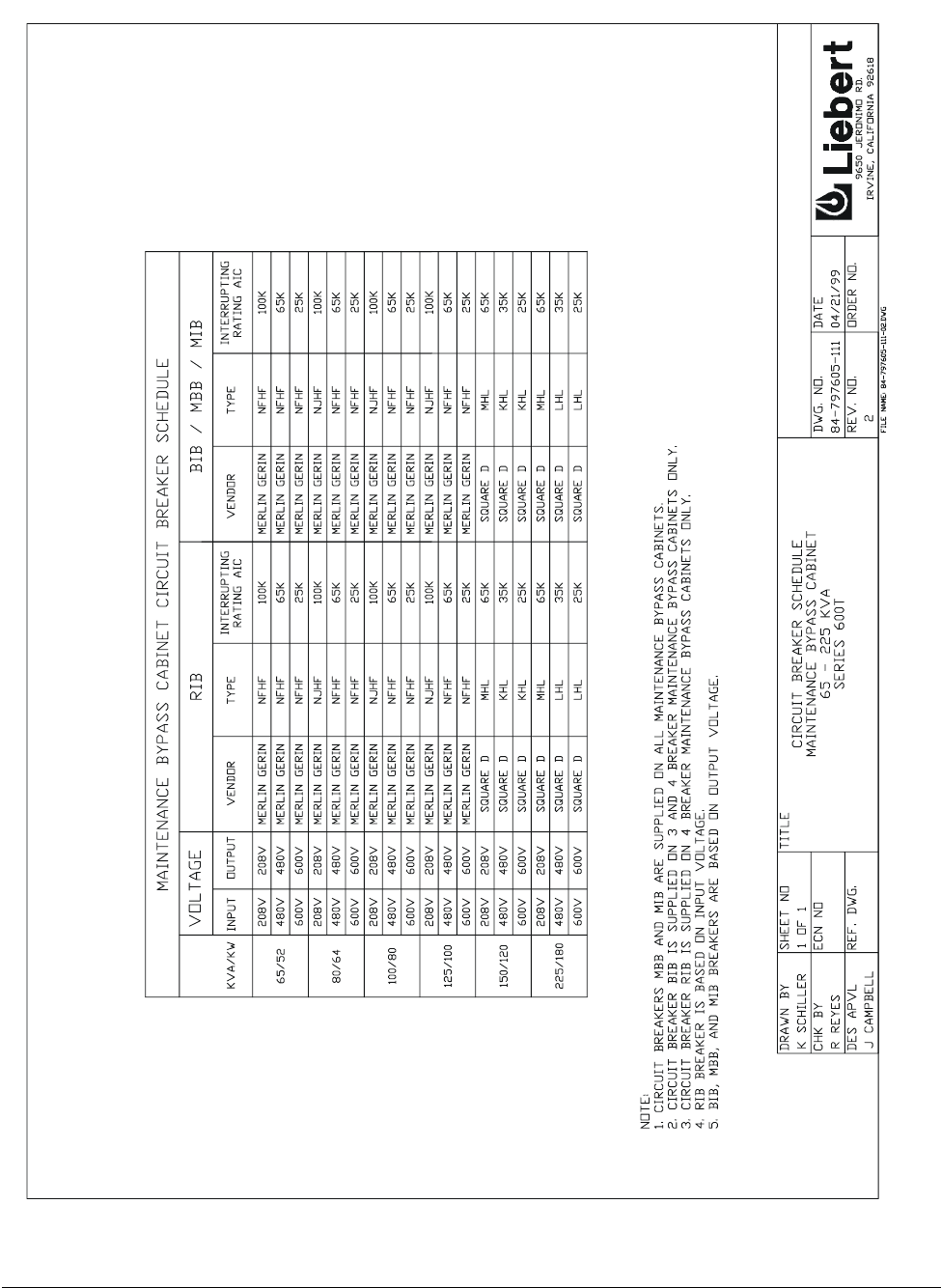 - Figure 58. Circuit Breaker Schedule, Maintenance Bypass Cabinet, 65 through 225 kVA