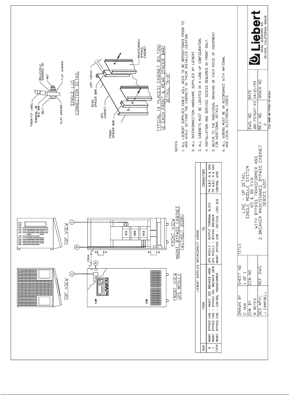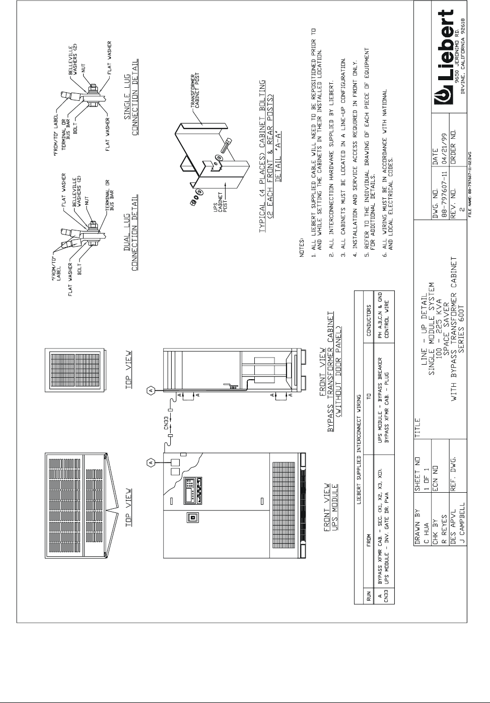 - Figure 34. Line-up Detail, 100-225 kVA with Bypass Transformer Cabinet and 3-Breaker MBC