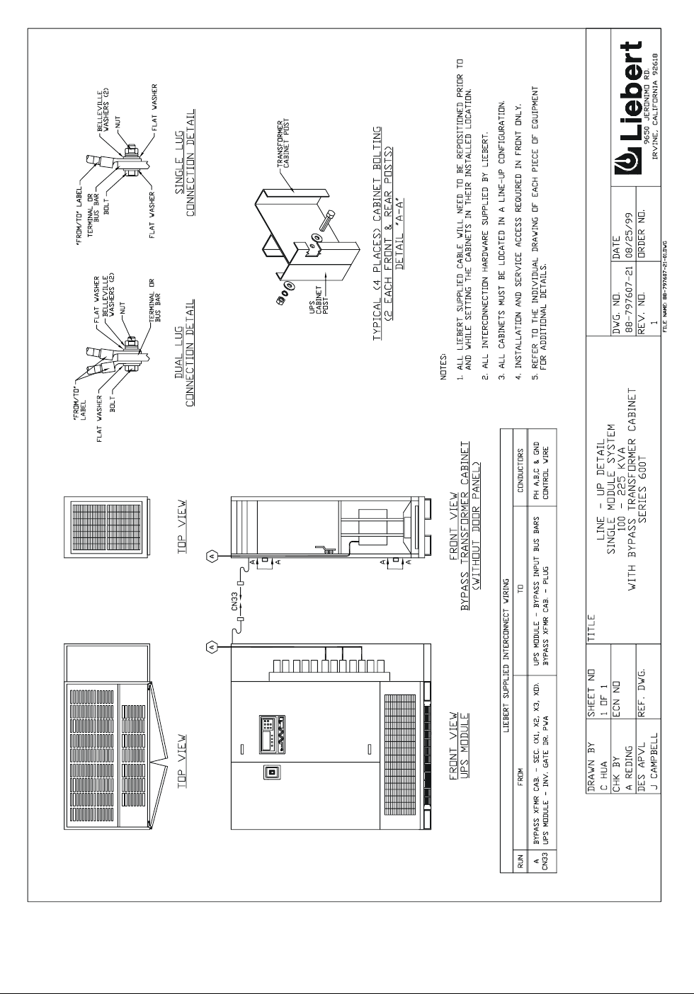 - Figure 25. Line-up Detail, 100-225 kVA Standard SMS with Bypass Transformer Cabinet