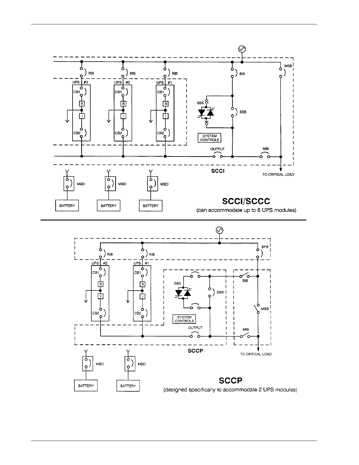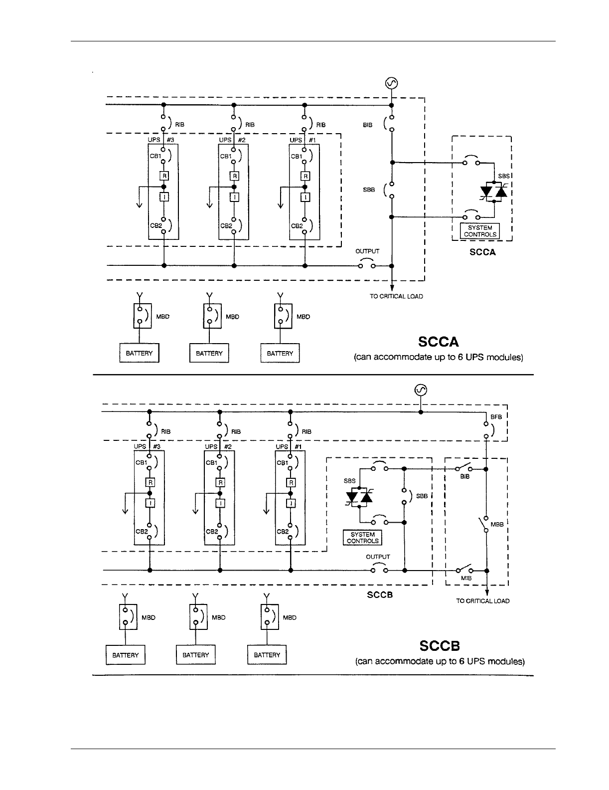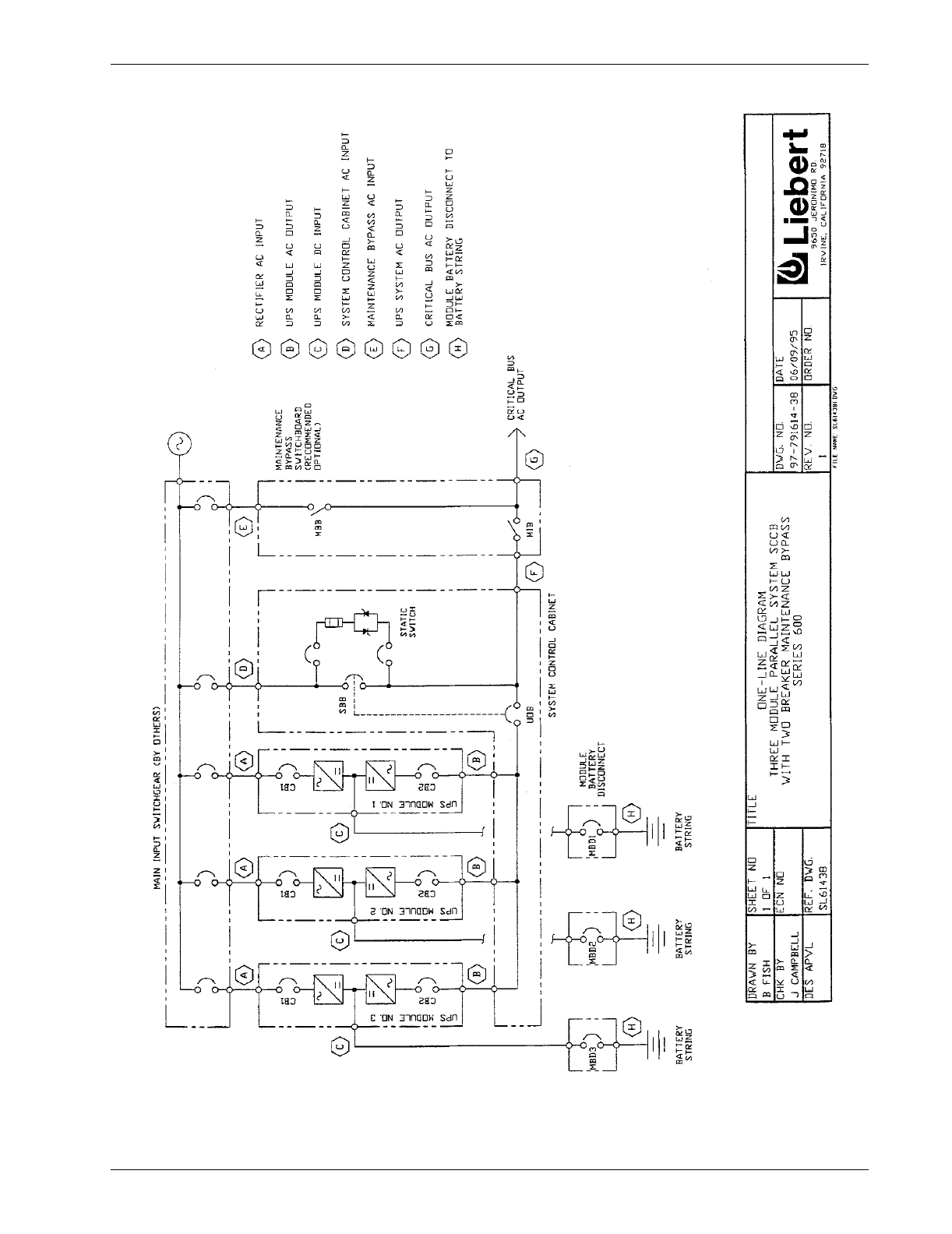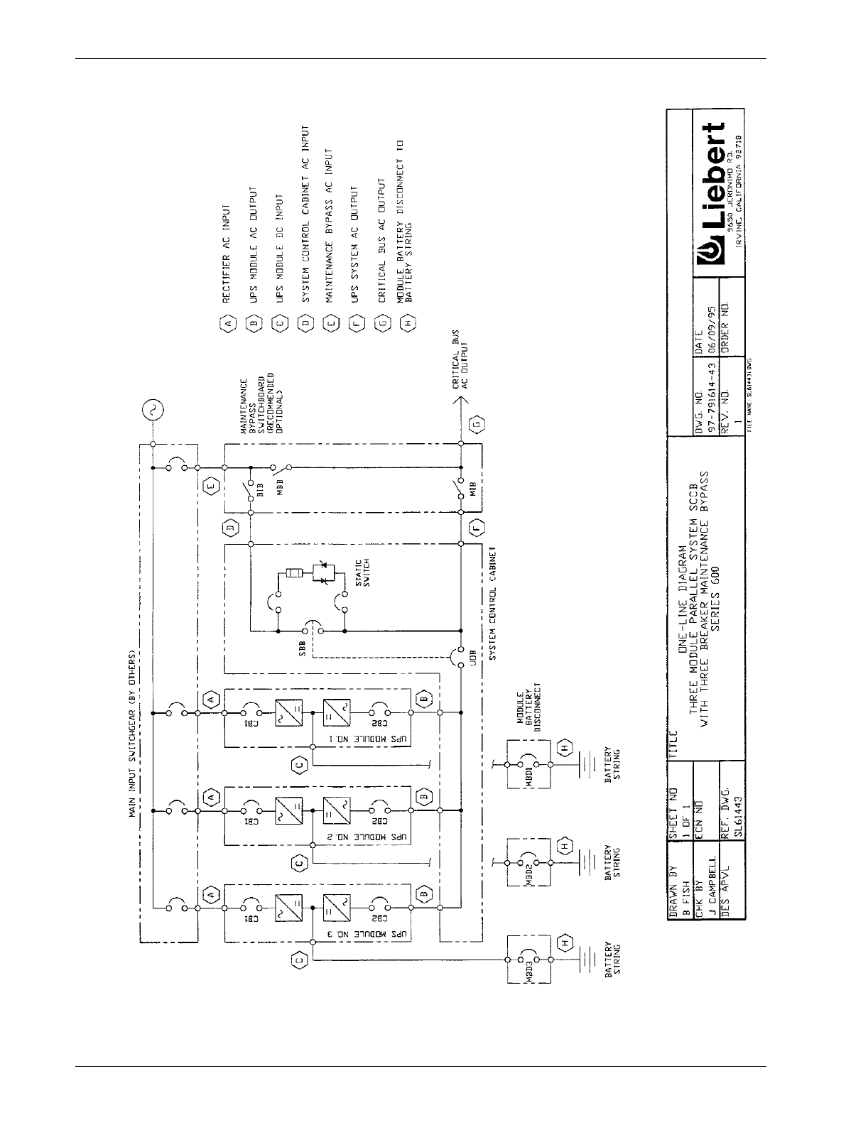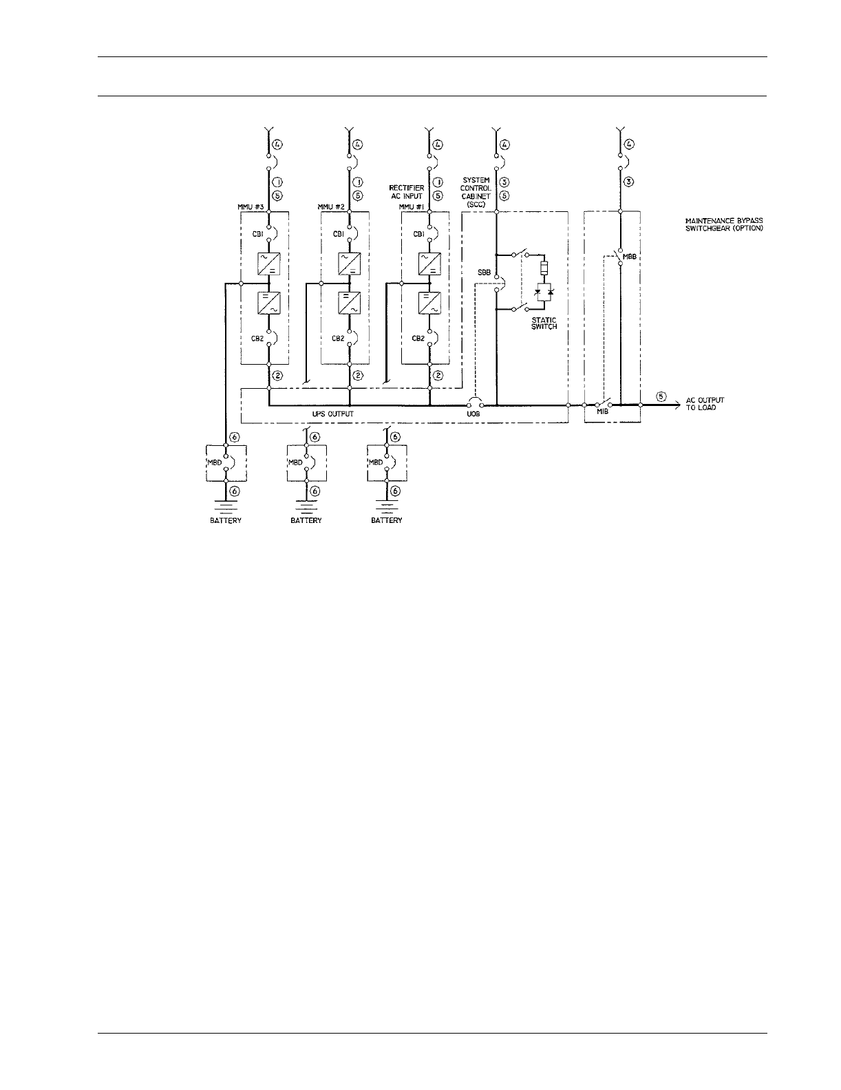 - Figure 59 System One-Line Diagram, Three Modules with Two Breaker Maintenance Bypass