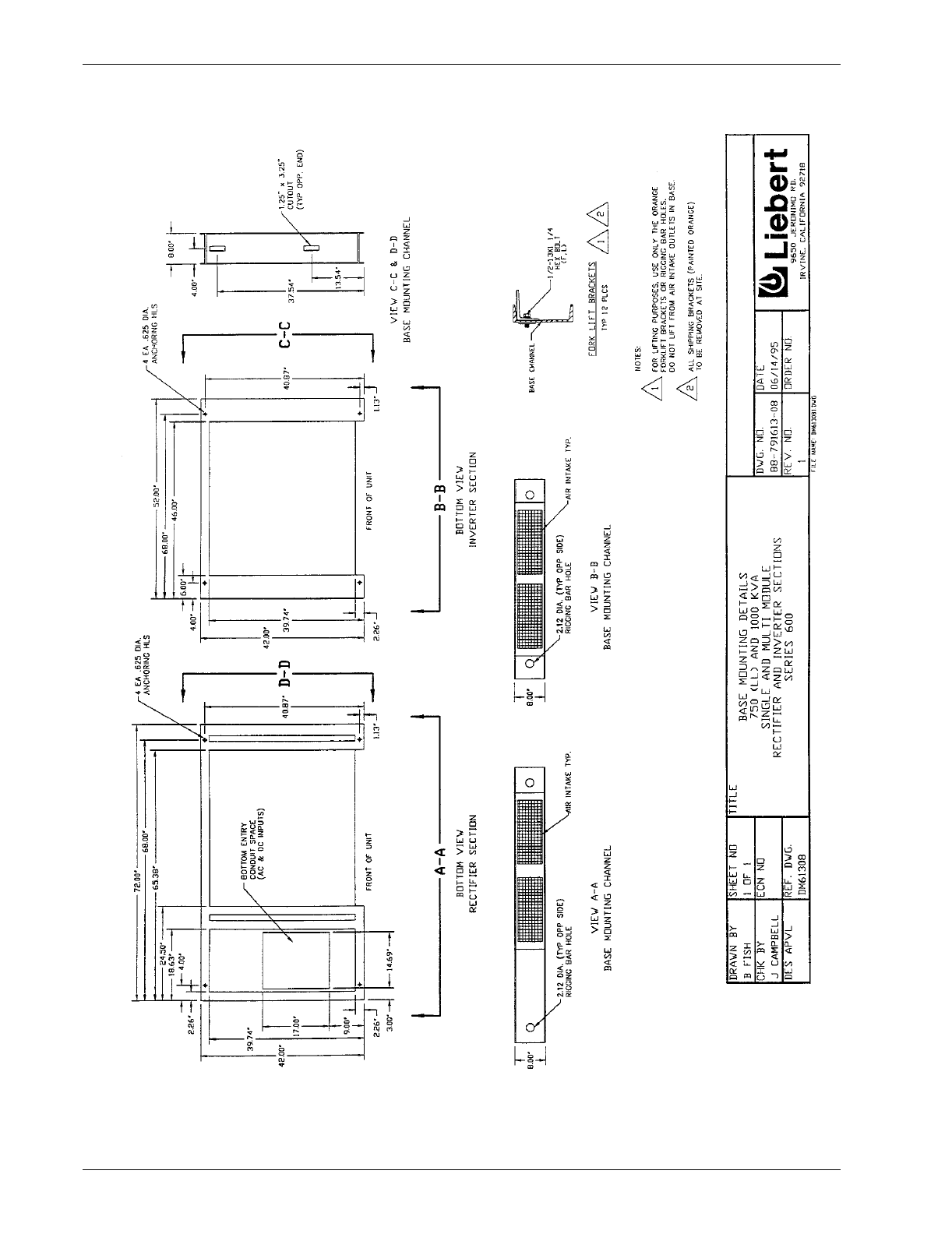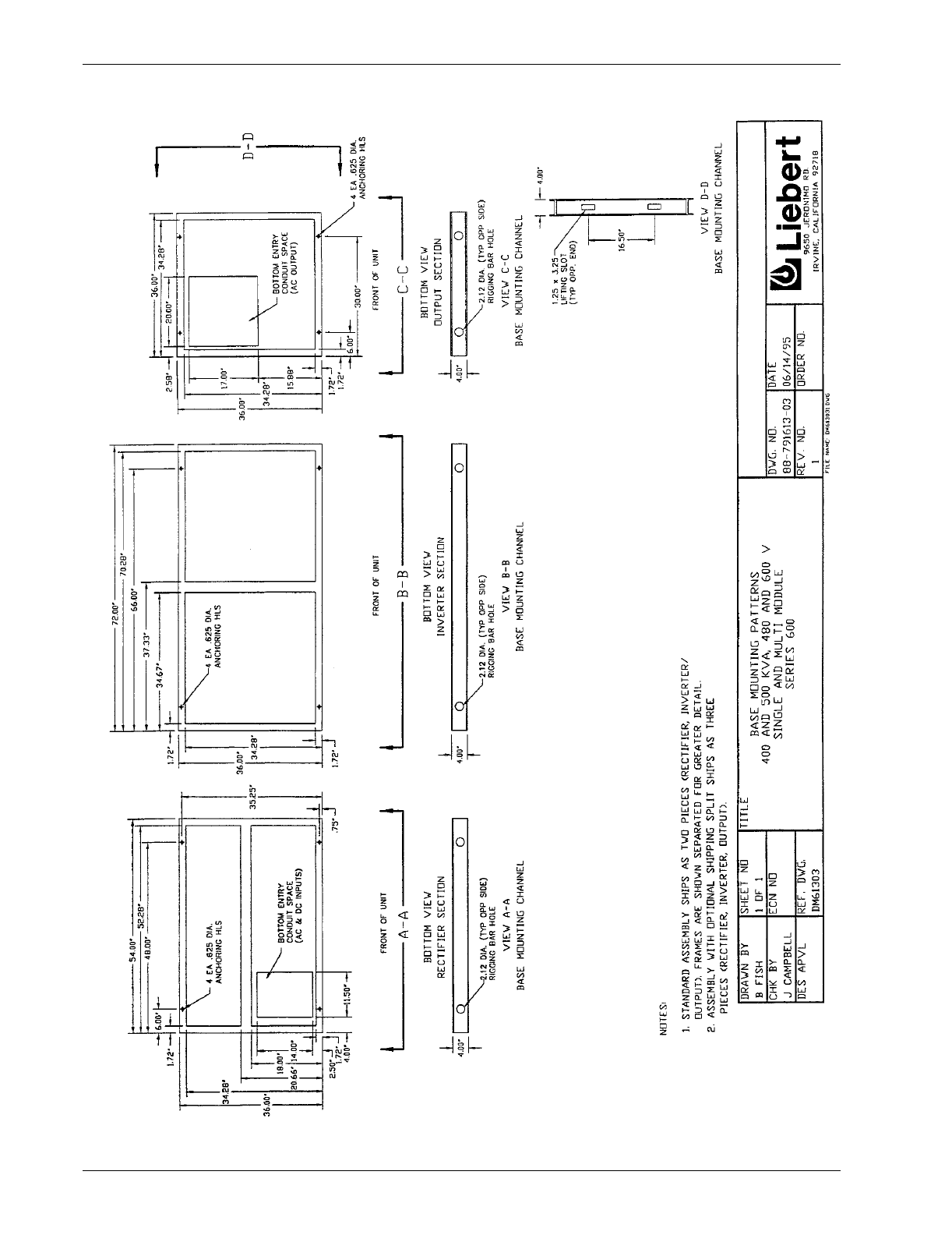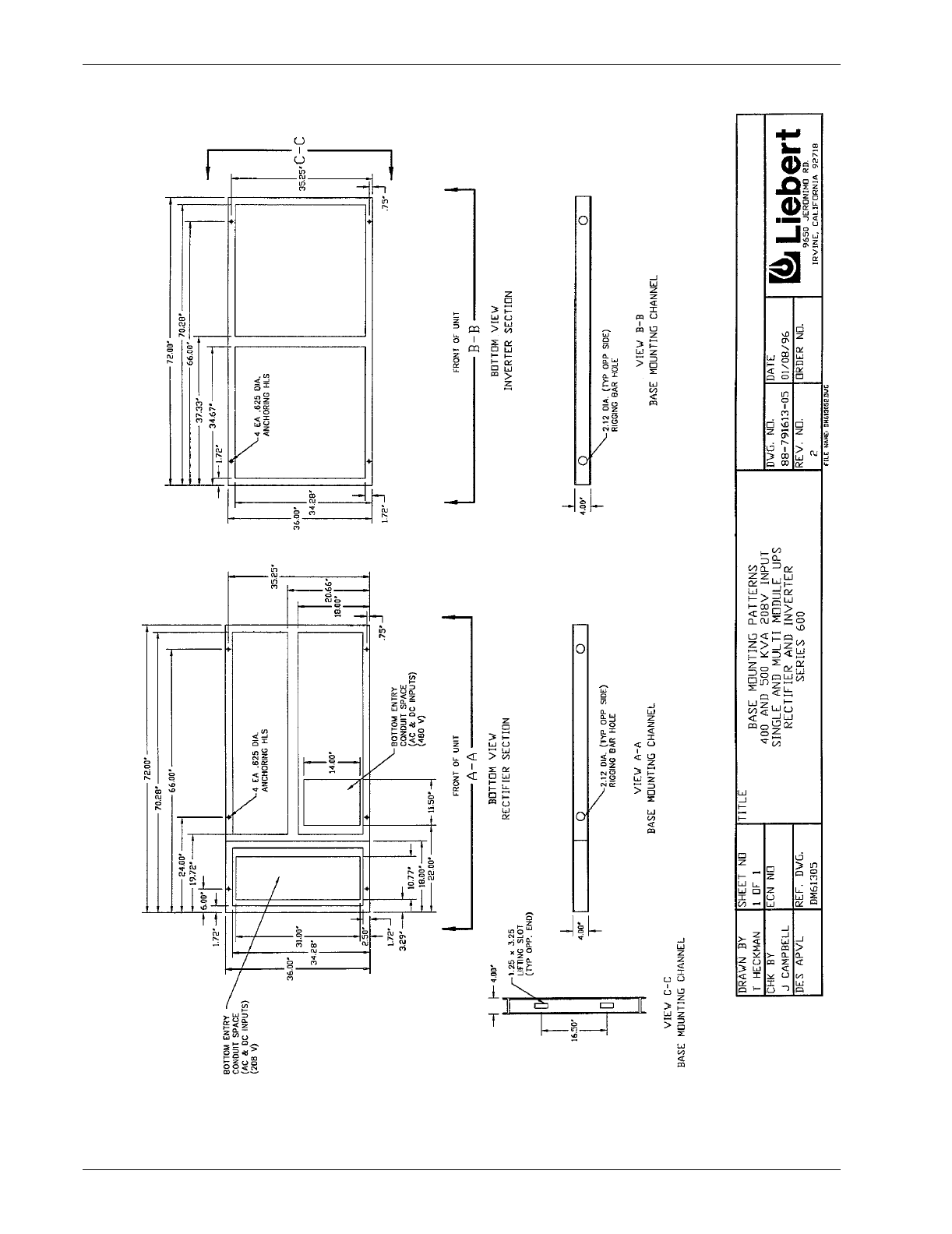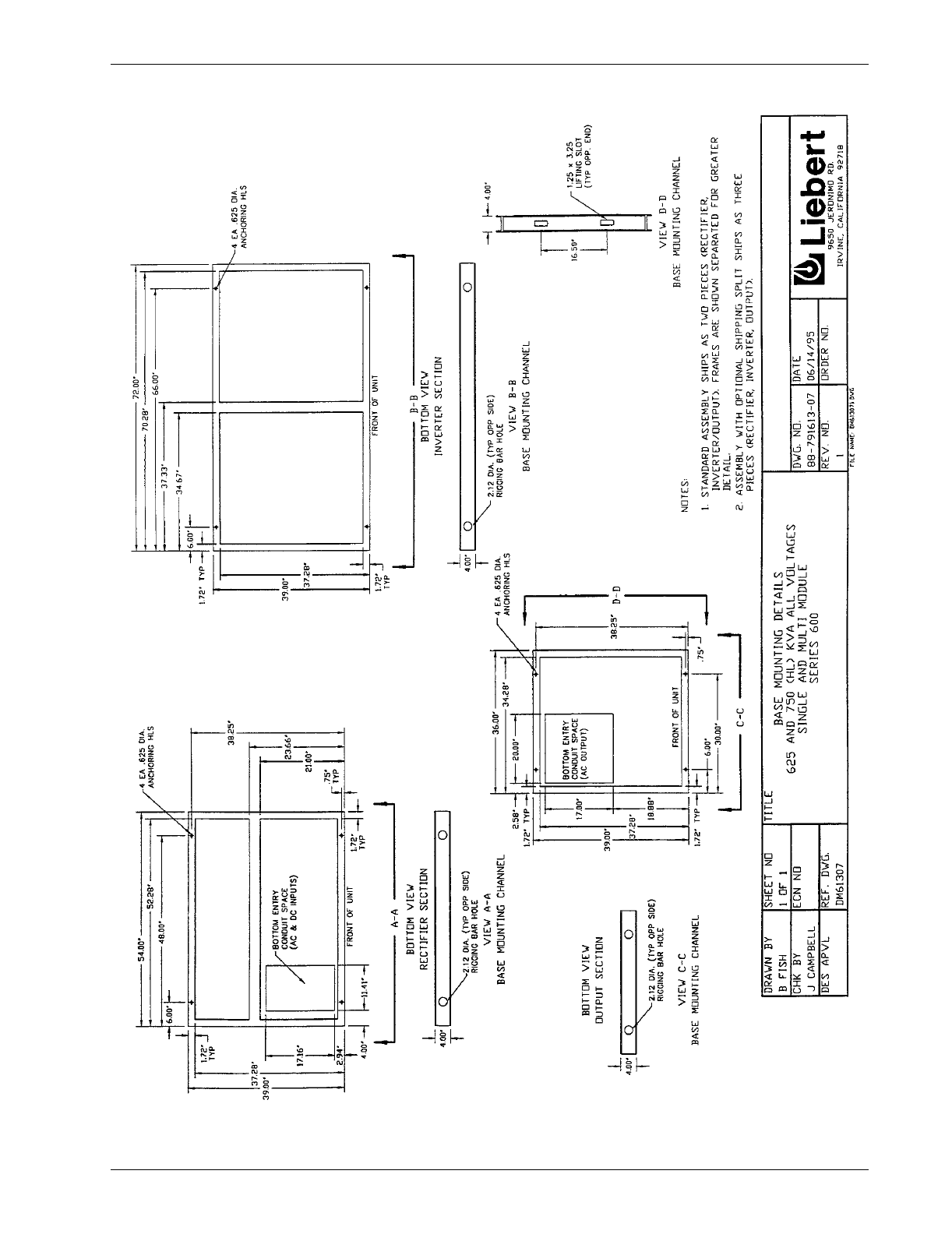- Figure 23 Base Mounting Details, 400 and 500 kVA, 208 VAC, Rectifier and Inverter Sections