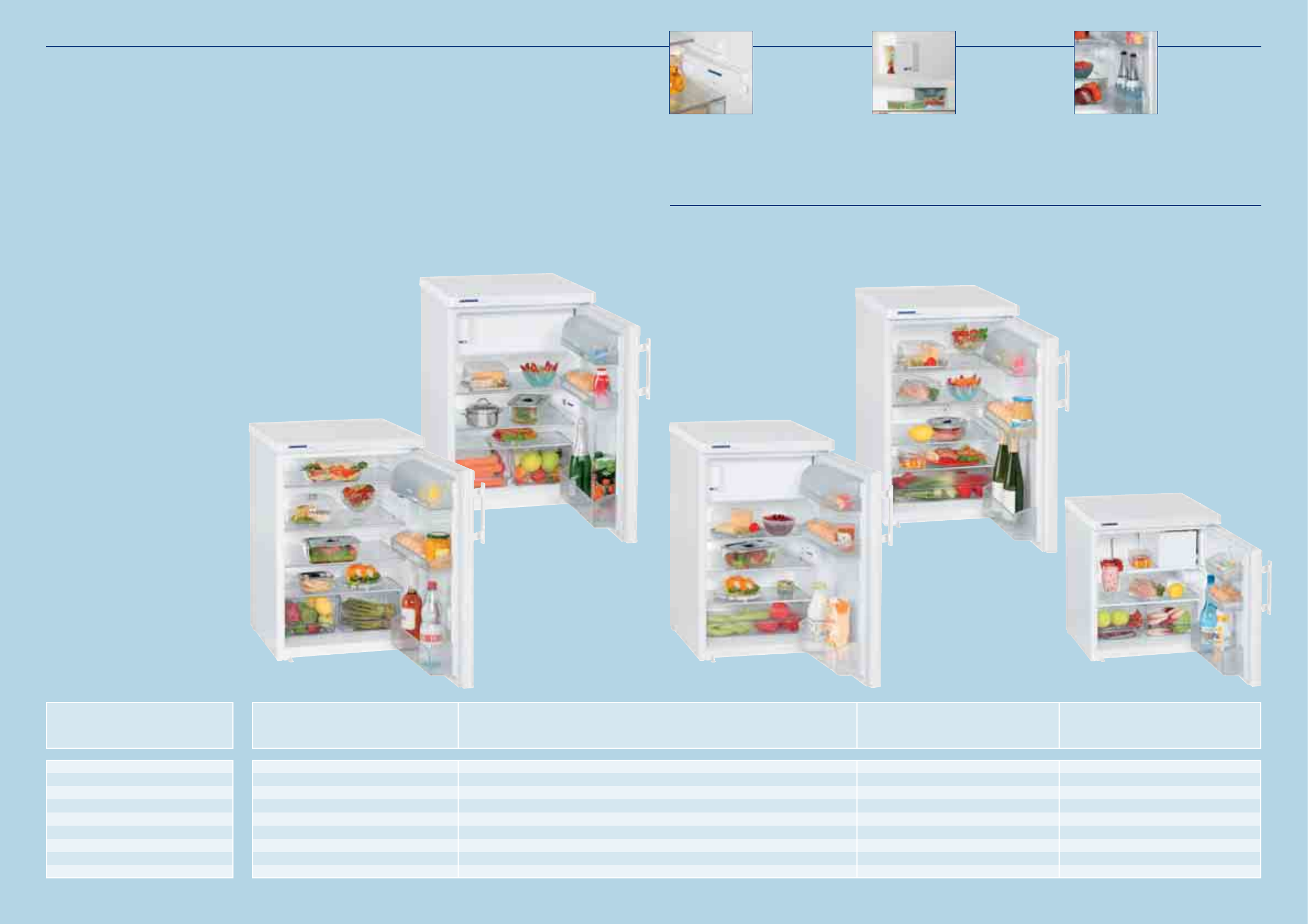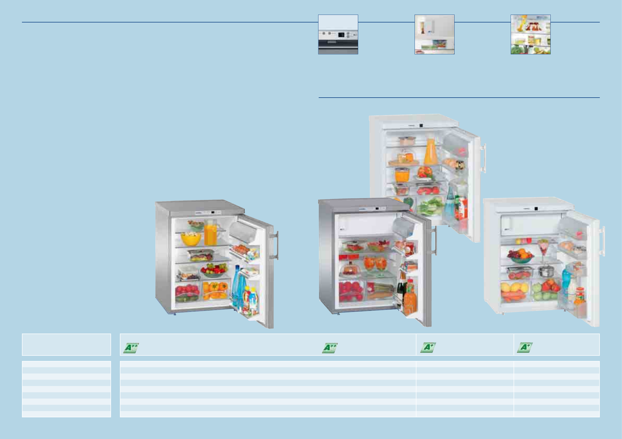 The range includes table-height and upright fridges, fridge-freezers, table-height and upright freezers