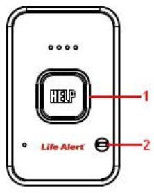 HELP Emergency Button: Press this button for three (3) seconds to turn on the HELP Pendnat and automatically call the Life