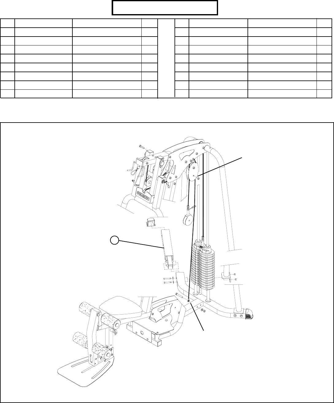 • Carefully route the LEG PRESS CABLE (4) around one 3-1/2” PULLEY (5) and SECURELY assemble the 3-1/2” PULLEY (5) to the MAIN