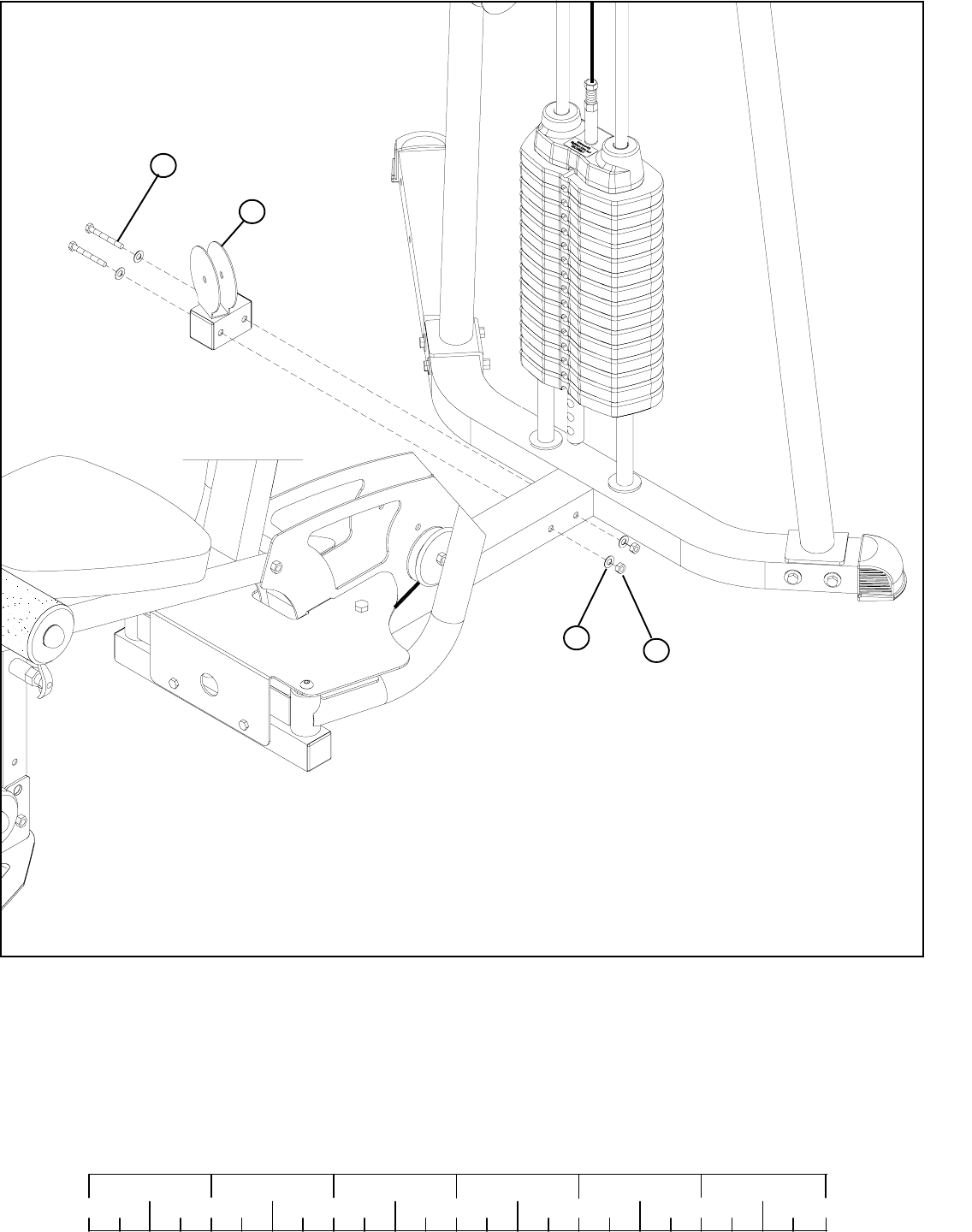 BRACKET (from 100 LEG PRESS kit) using one 3/8 X 1-3/4” BOLT (10), one 3/8” WASHER (11), one “L” CABLE RETAINER (3)
