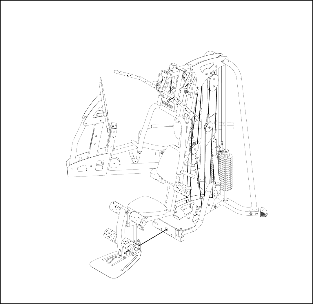 • SECURELY assemble the swivel end of the LEG PRESS CABLE (4) to the SEAT FRAME using one 3/8 X 4-3/4” BOLT (15), two STEP