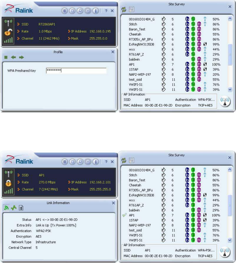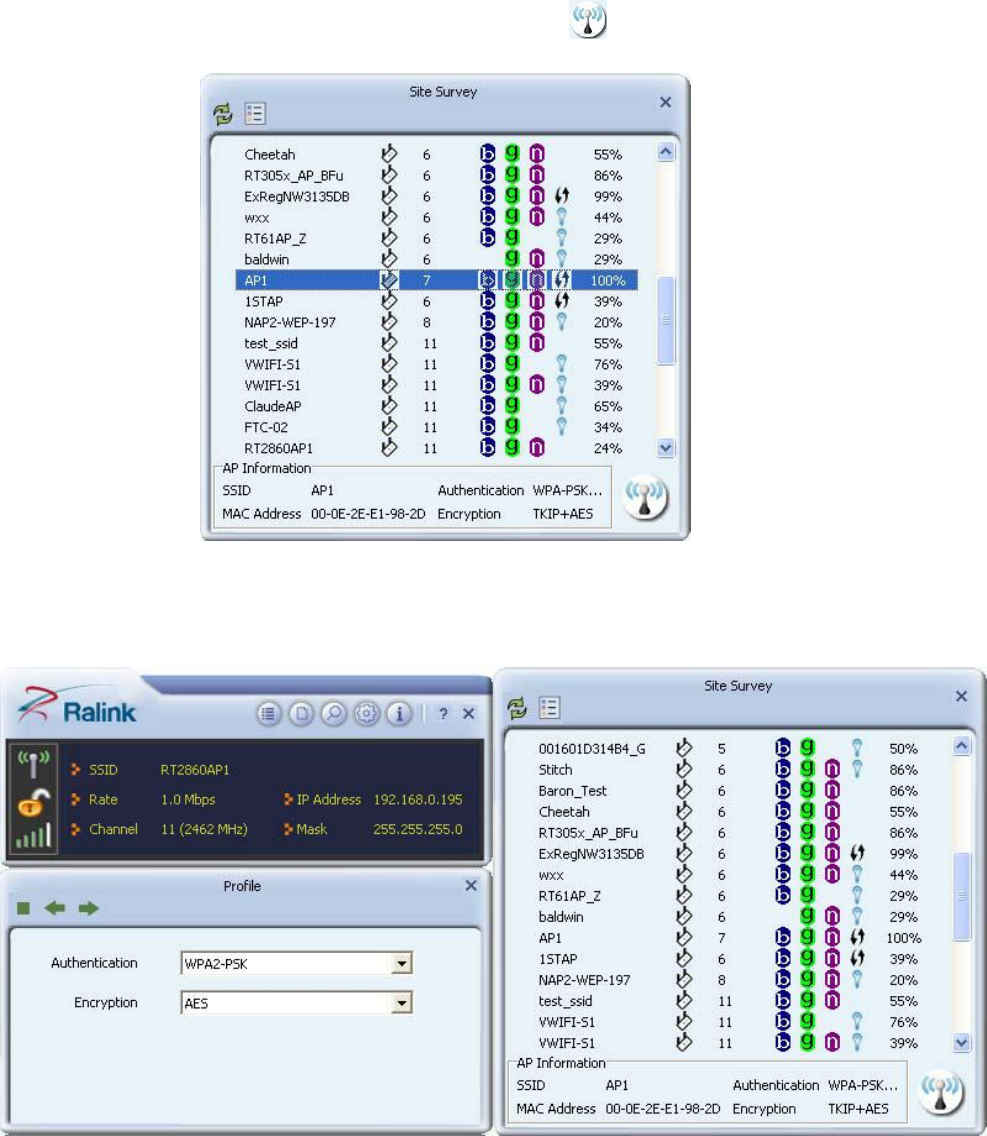 2. When starting RaUI, the system will connect to the AP with best signal strength
