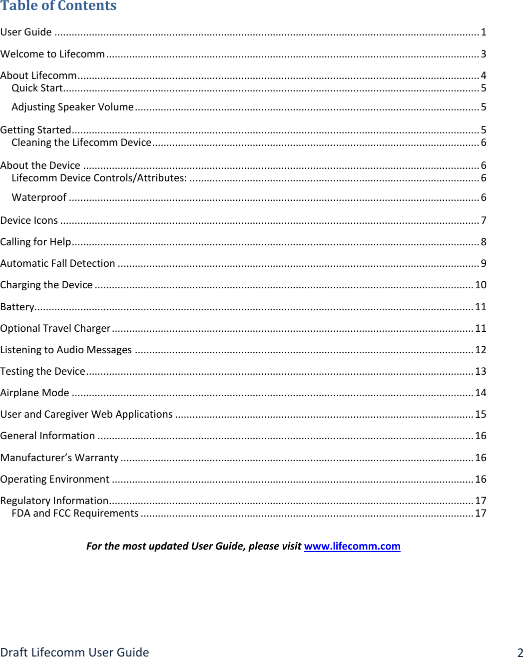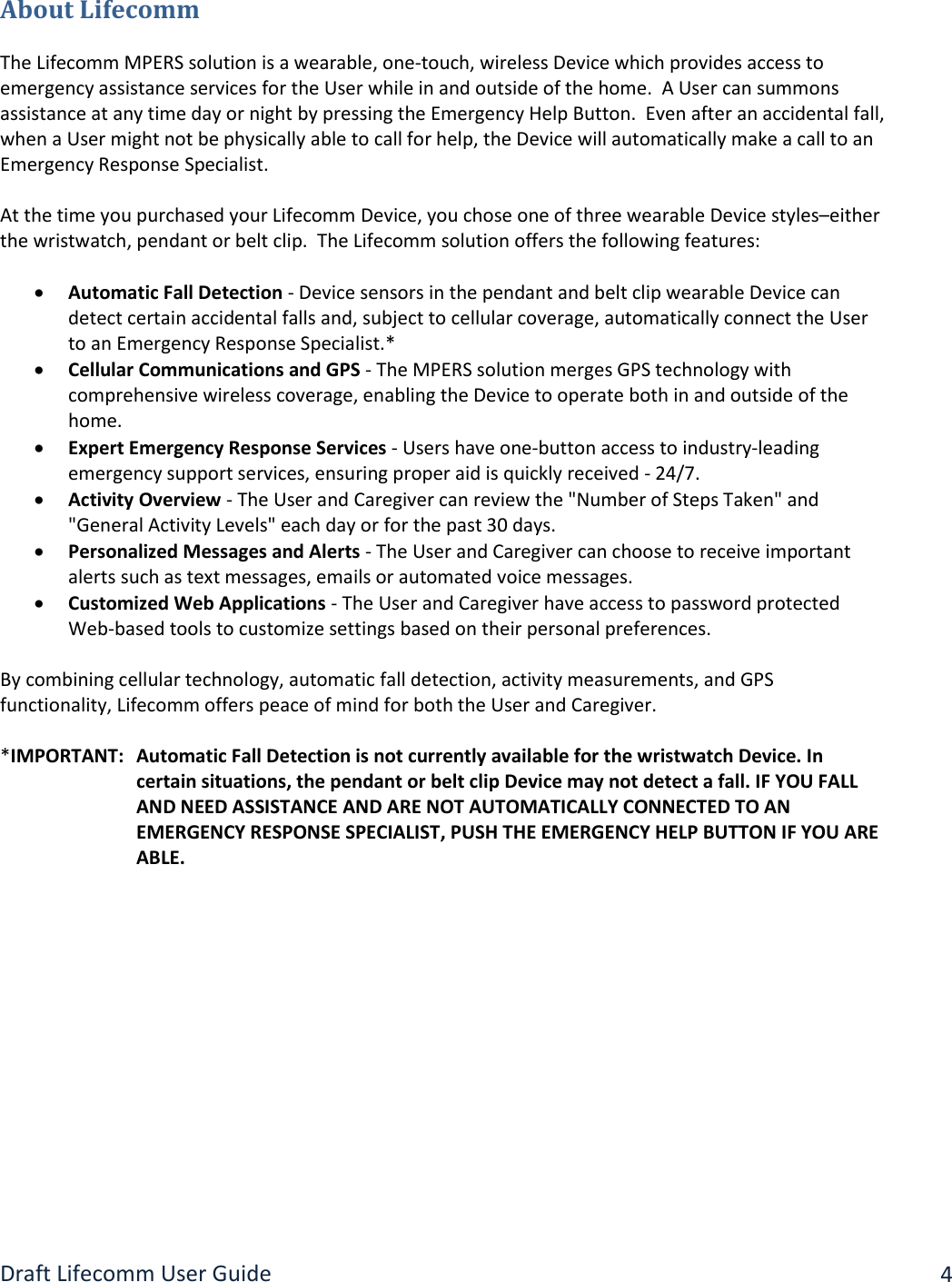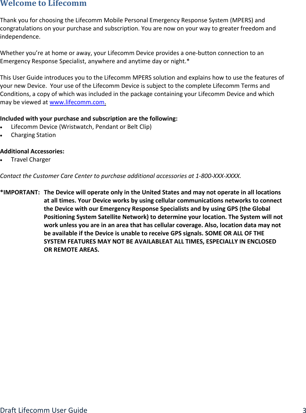 Lifecomm LC140 CDMA1x 850MHz/1900MHz MPERs Pendant User Manual