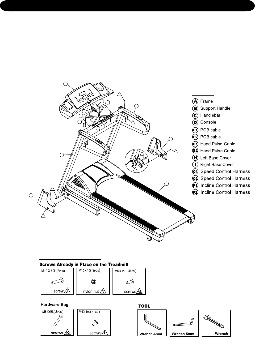 start the treadmill and set the speed to 3 MPH. Using a 6 mm Allen Wrench, included in your