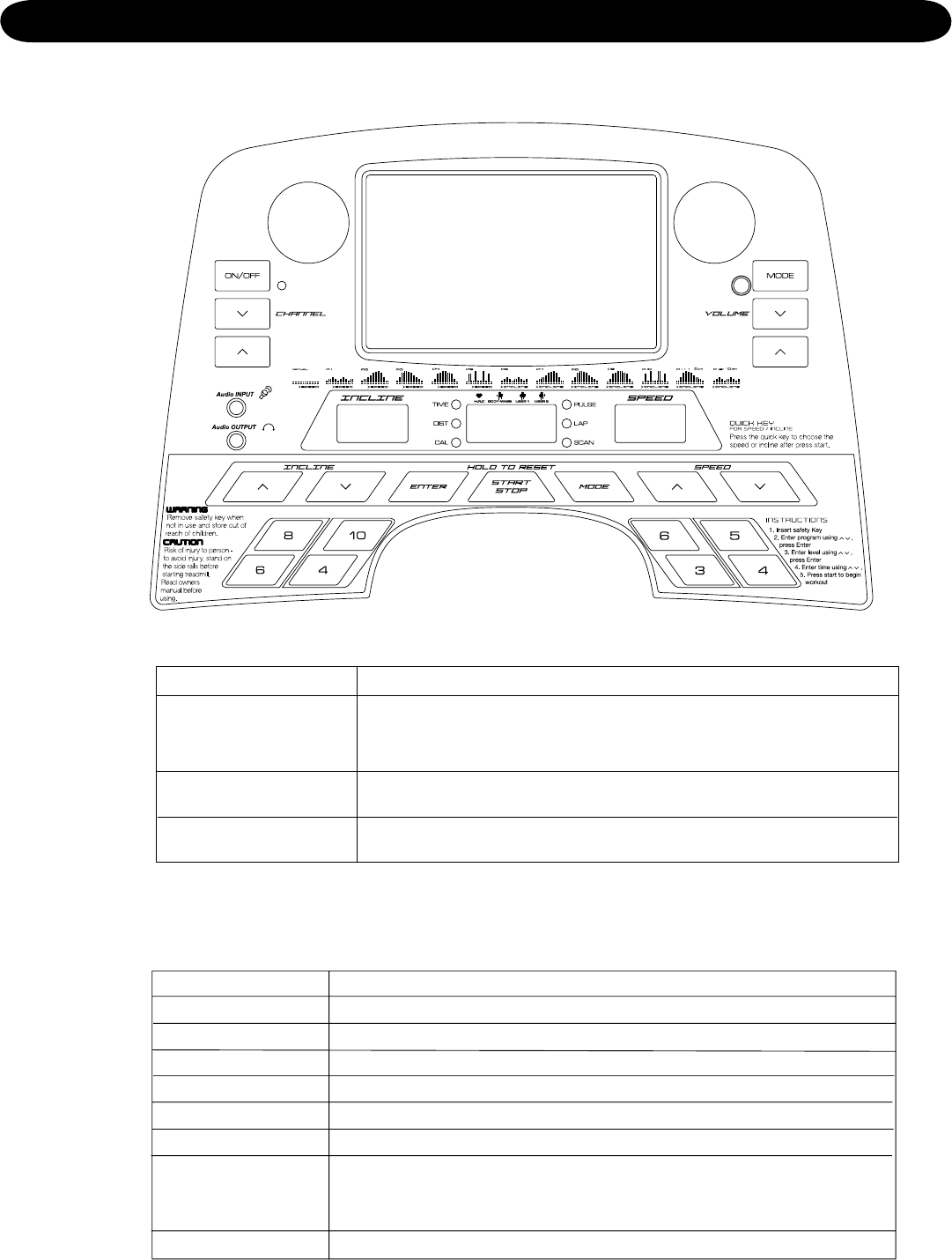 Speed / Incline Controls Quick Speed & Incline Quick Speed & Incline