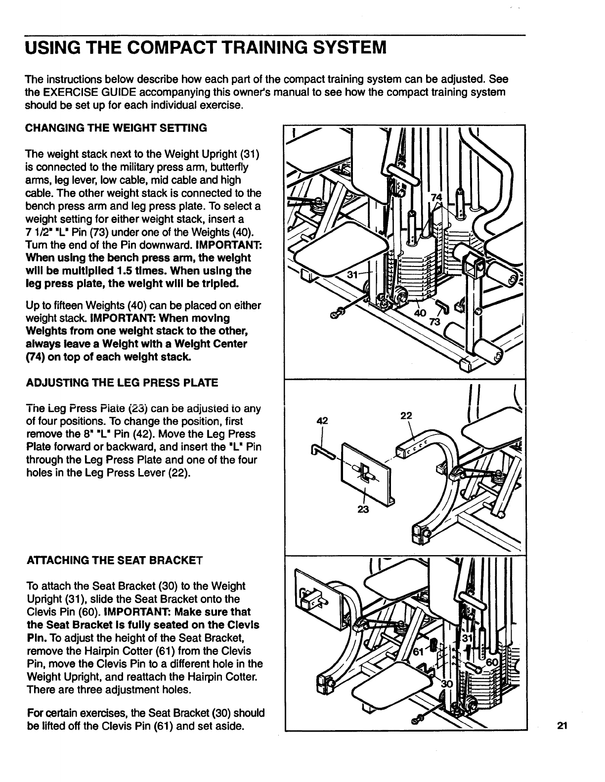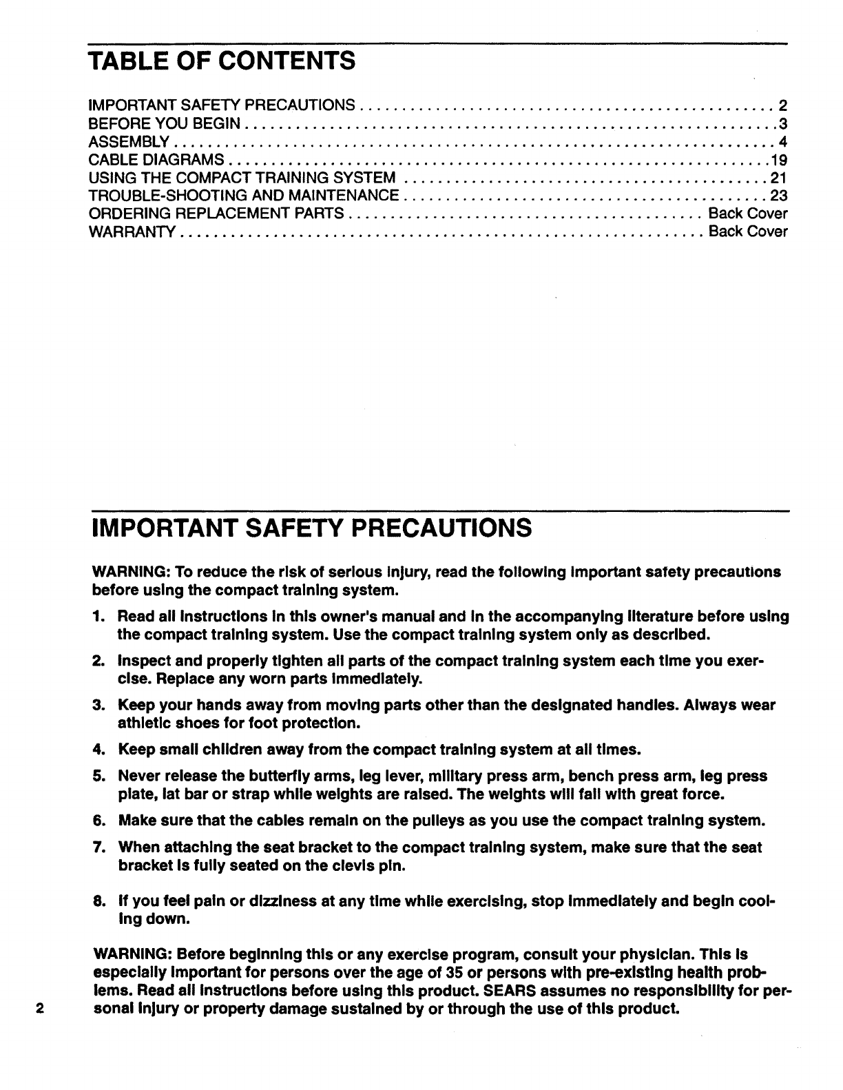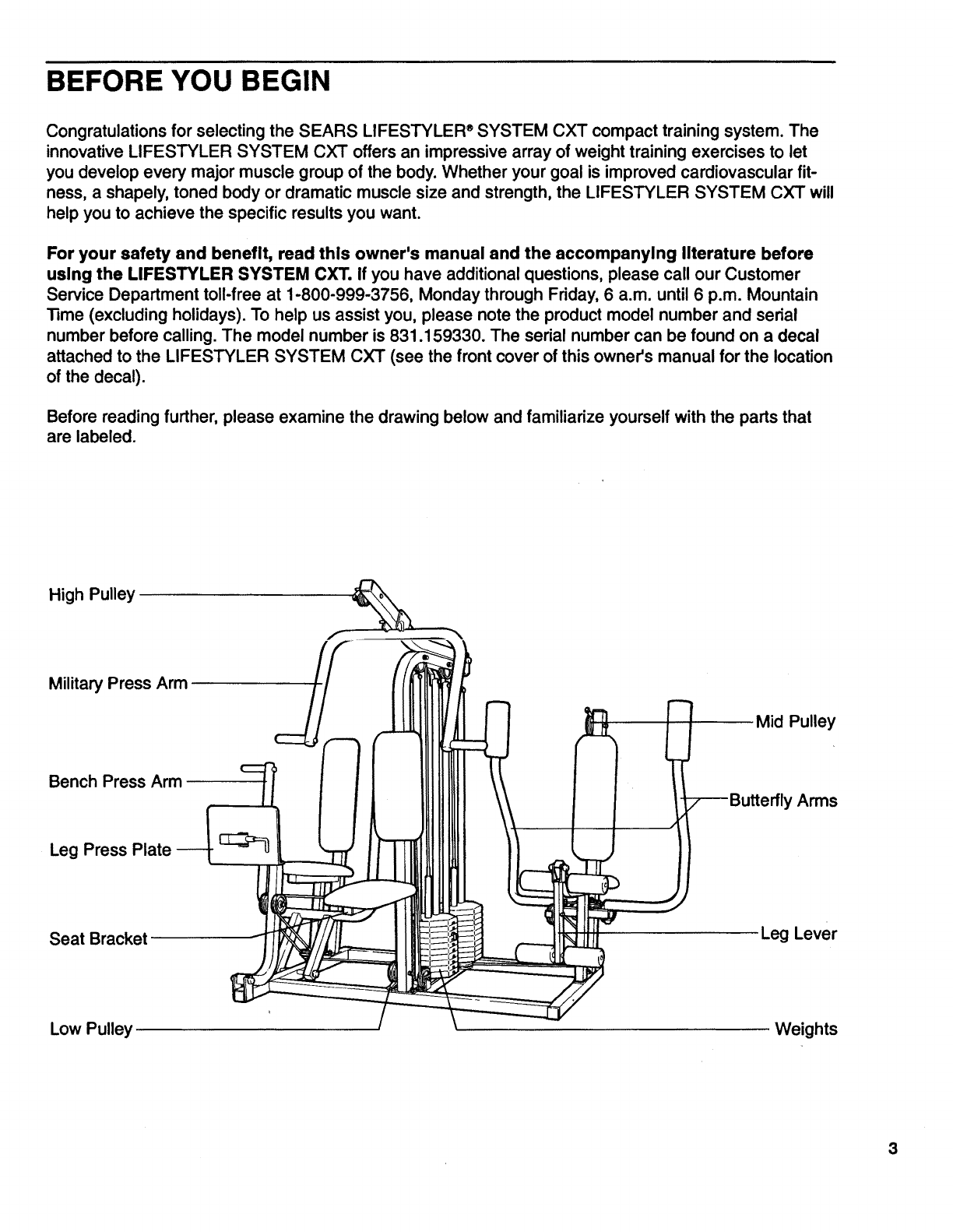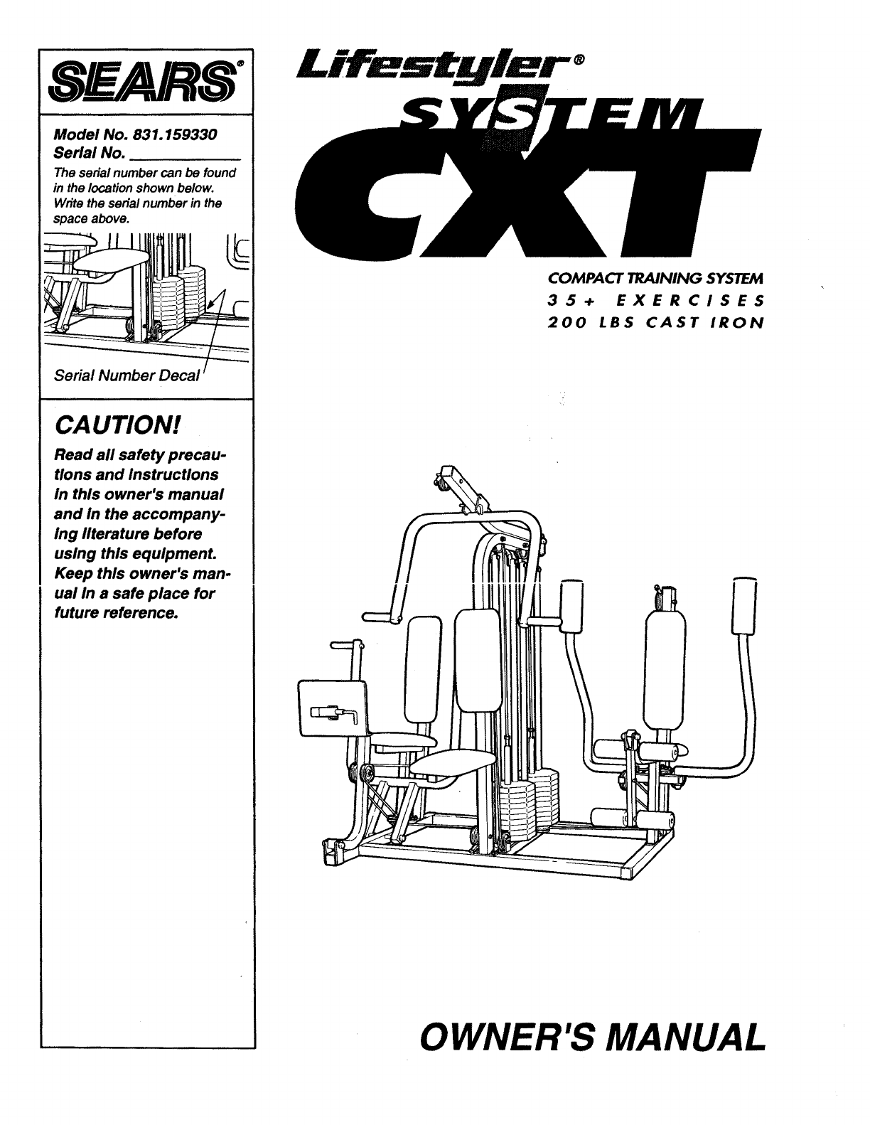 Congratulations for selecting the SEARS LIFESTYLER ®SYSTEM CXT compact training system. The
