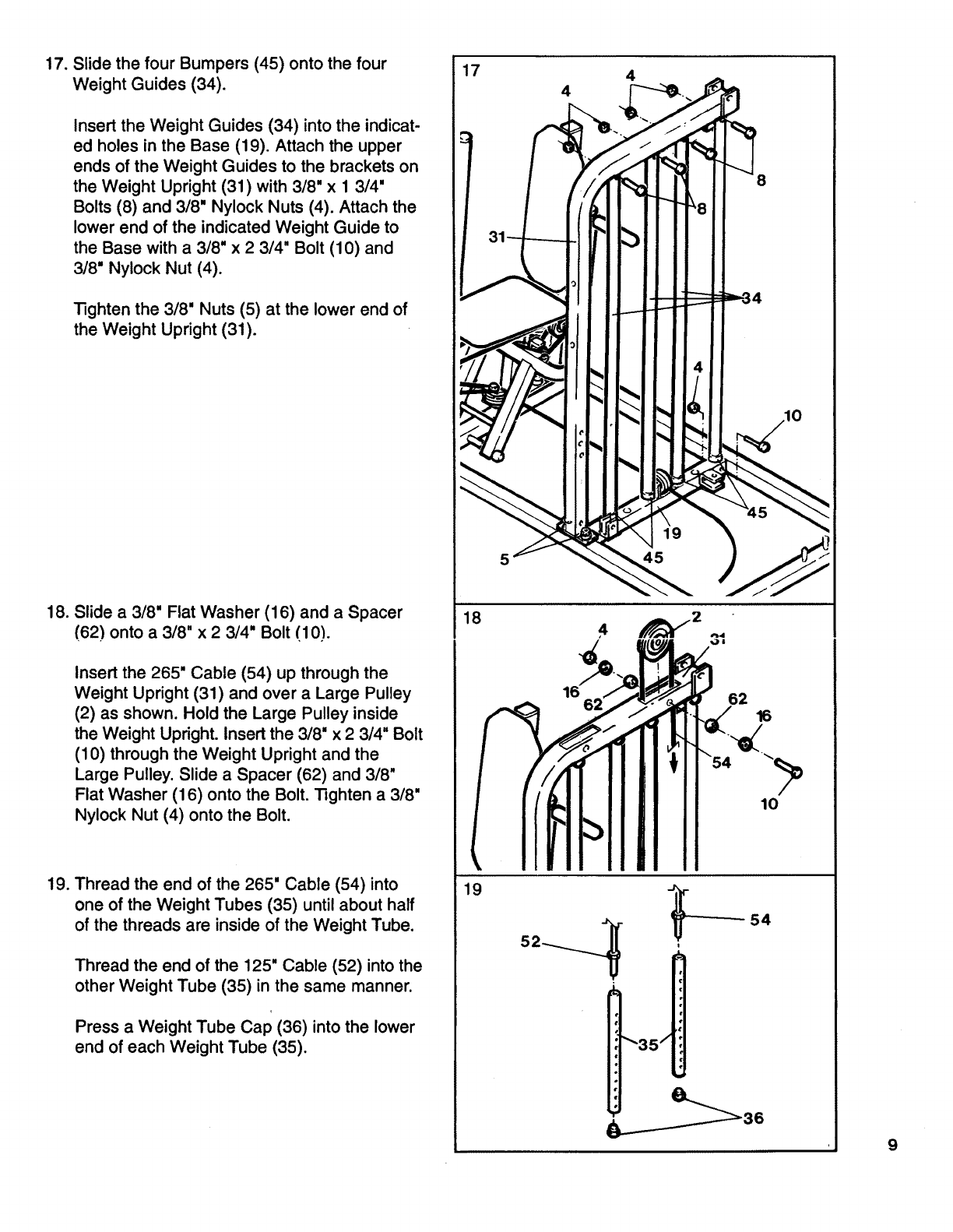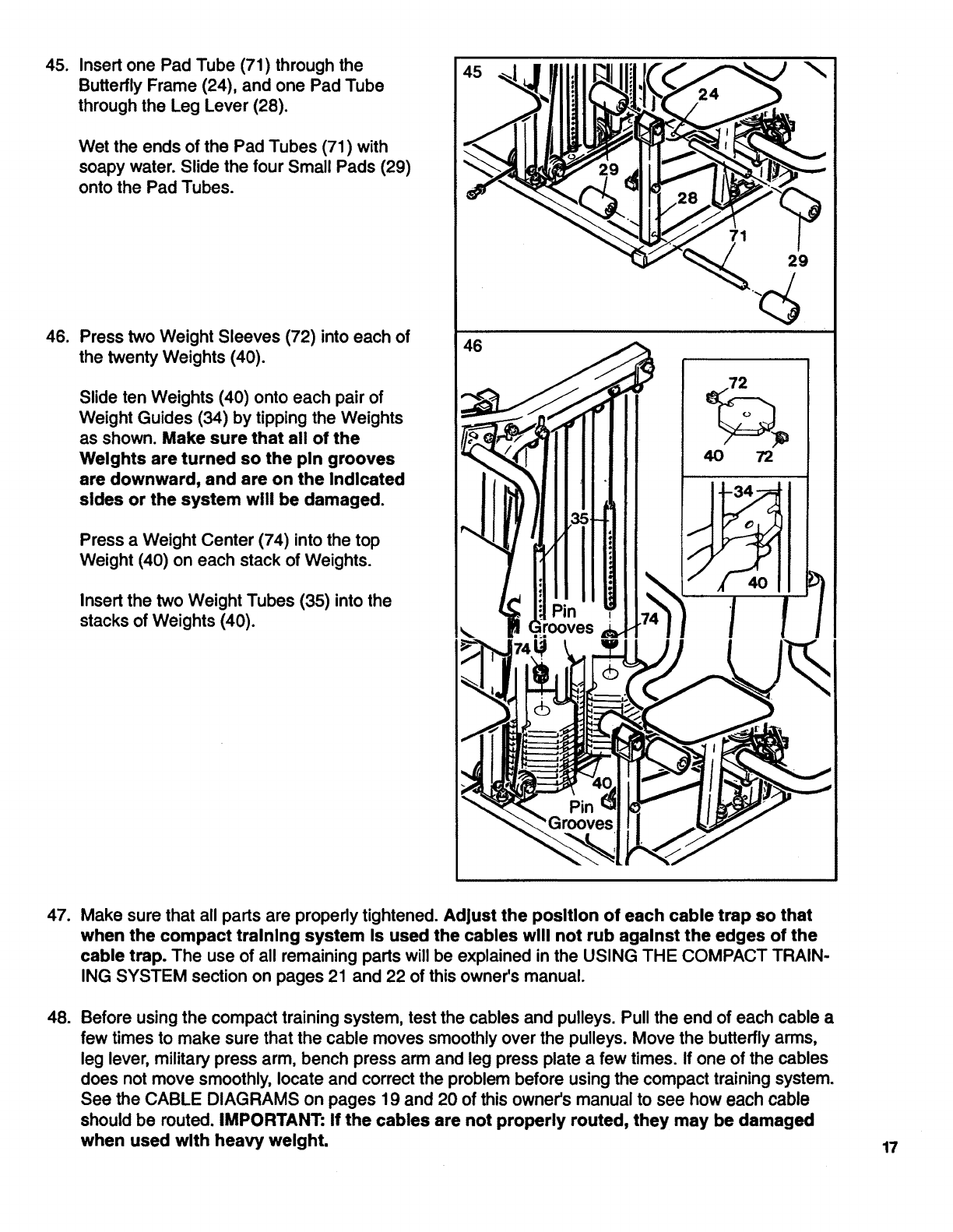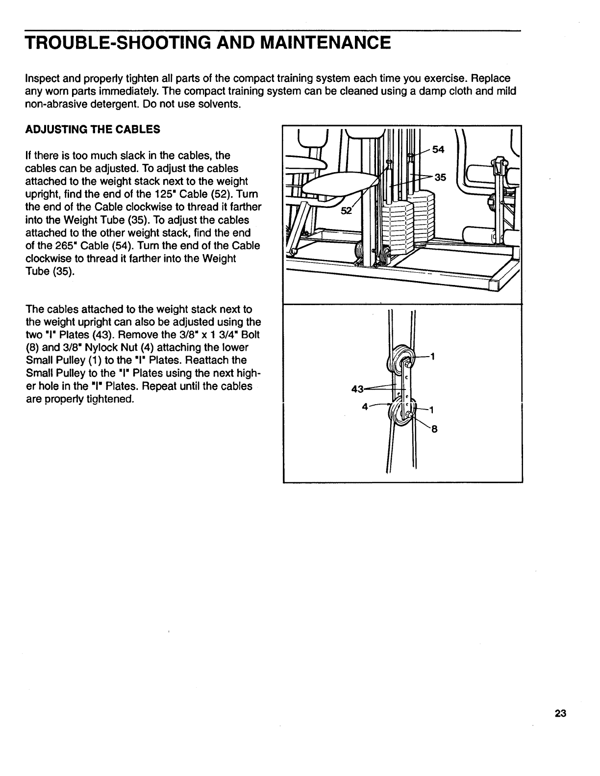 into the Weight Tube (35). To adjust the cables