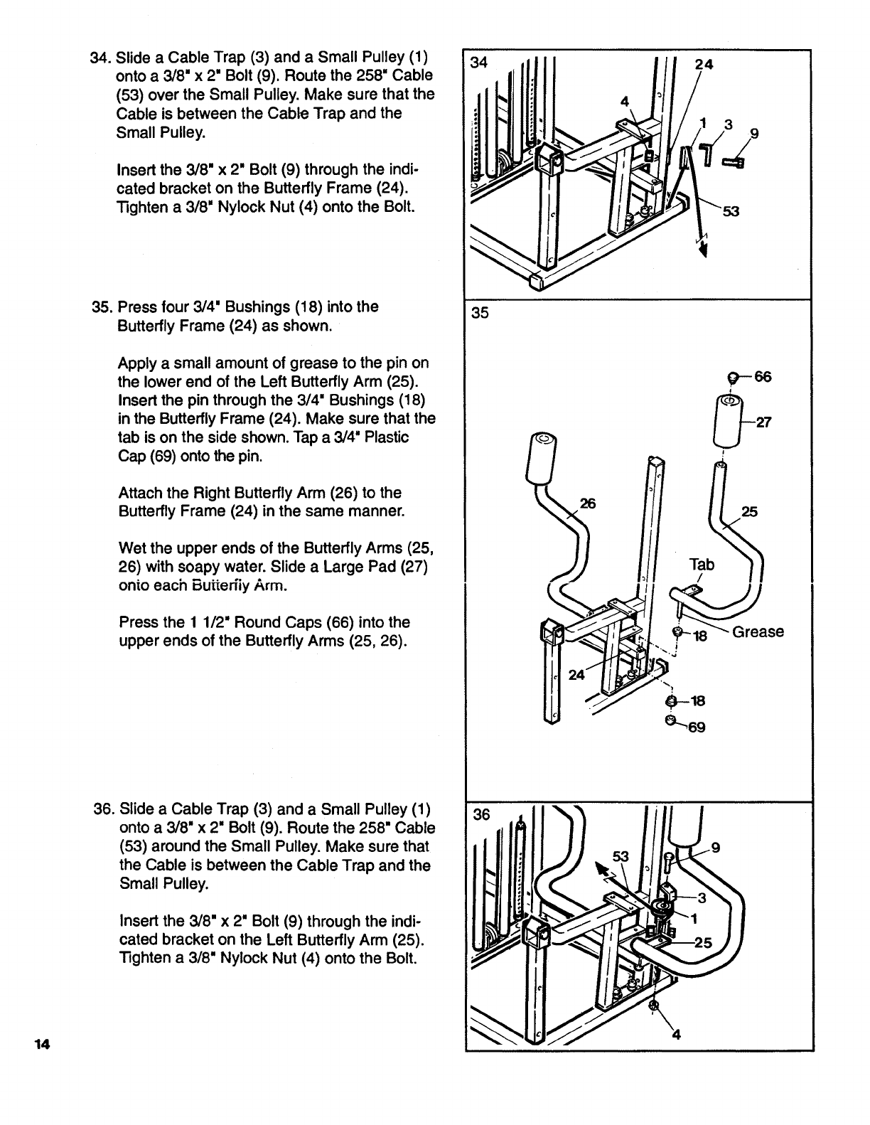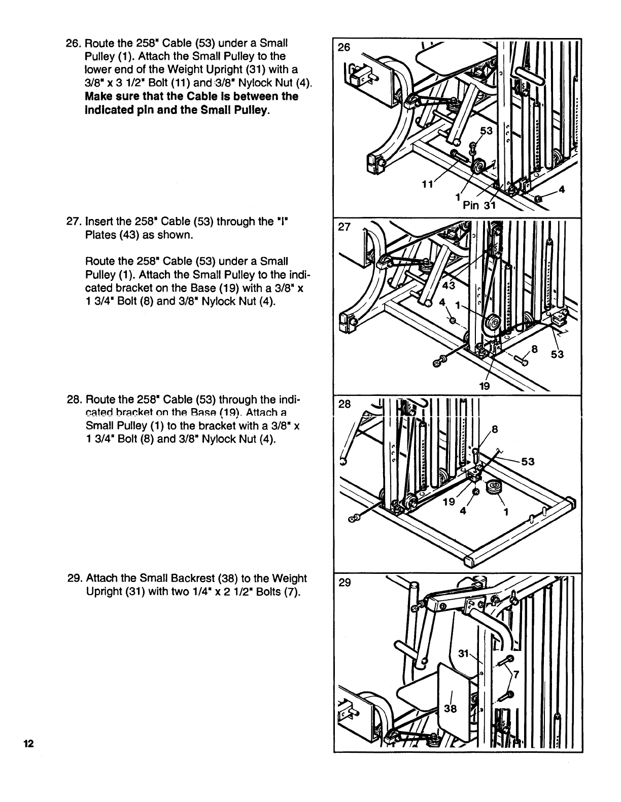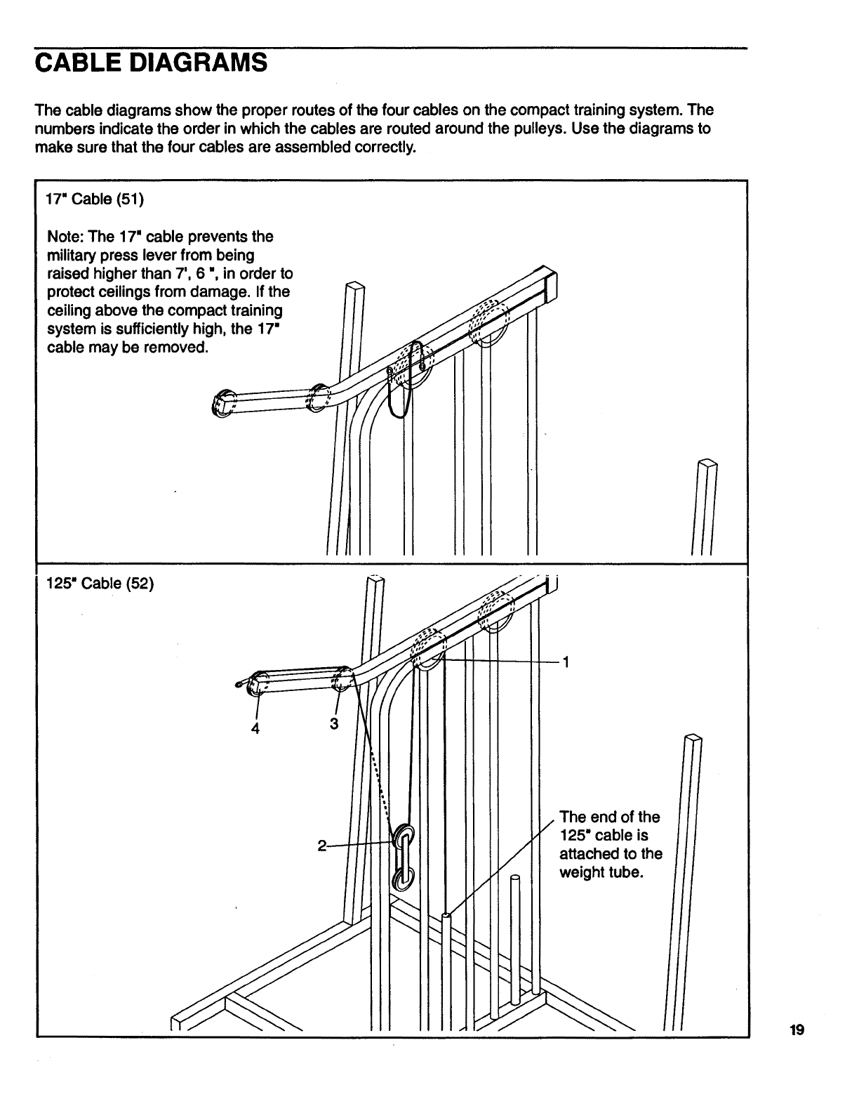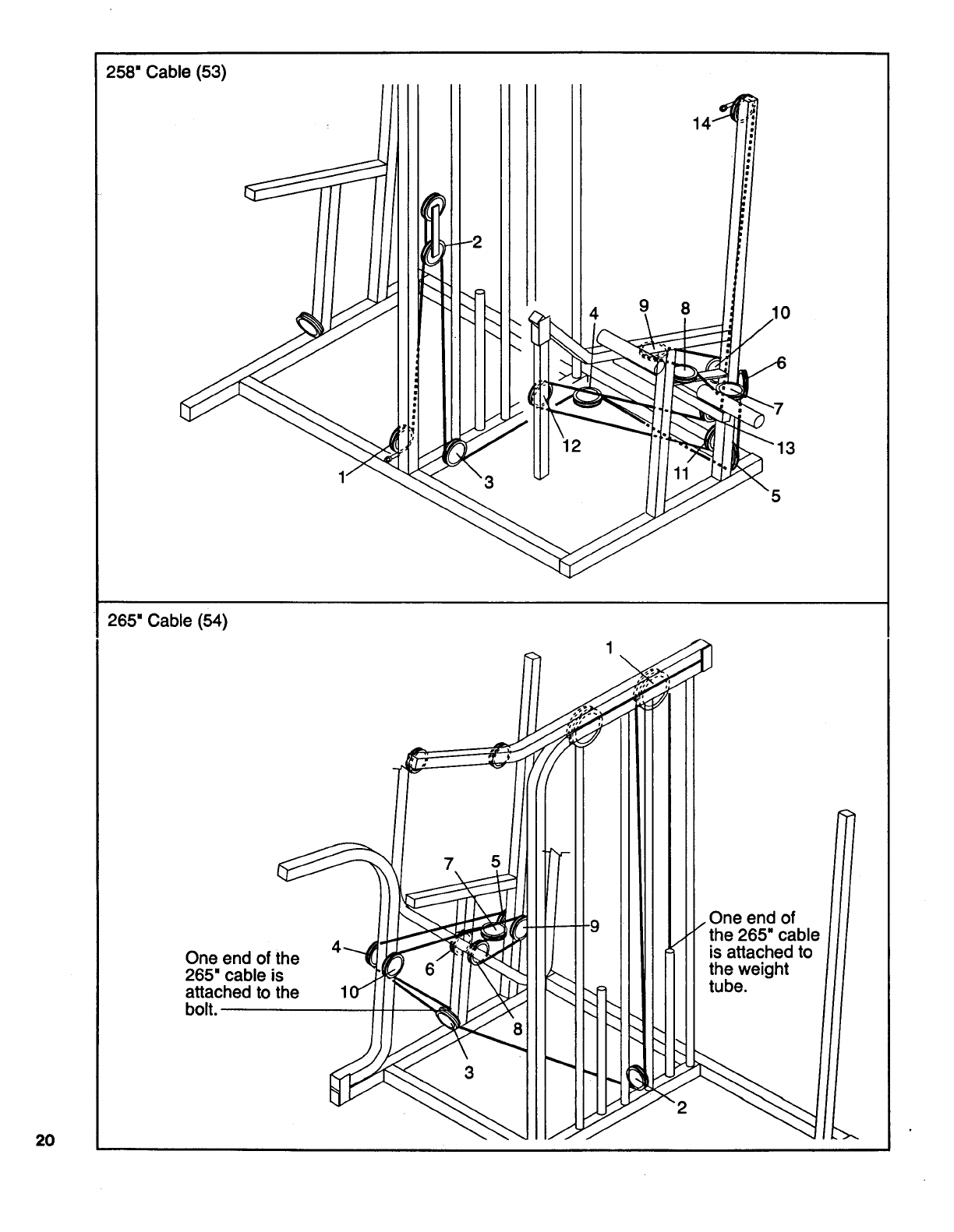 into the Weight Tube (35). To adjust the cables