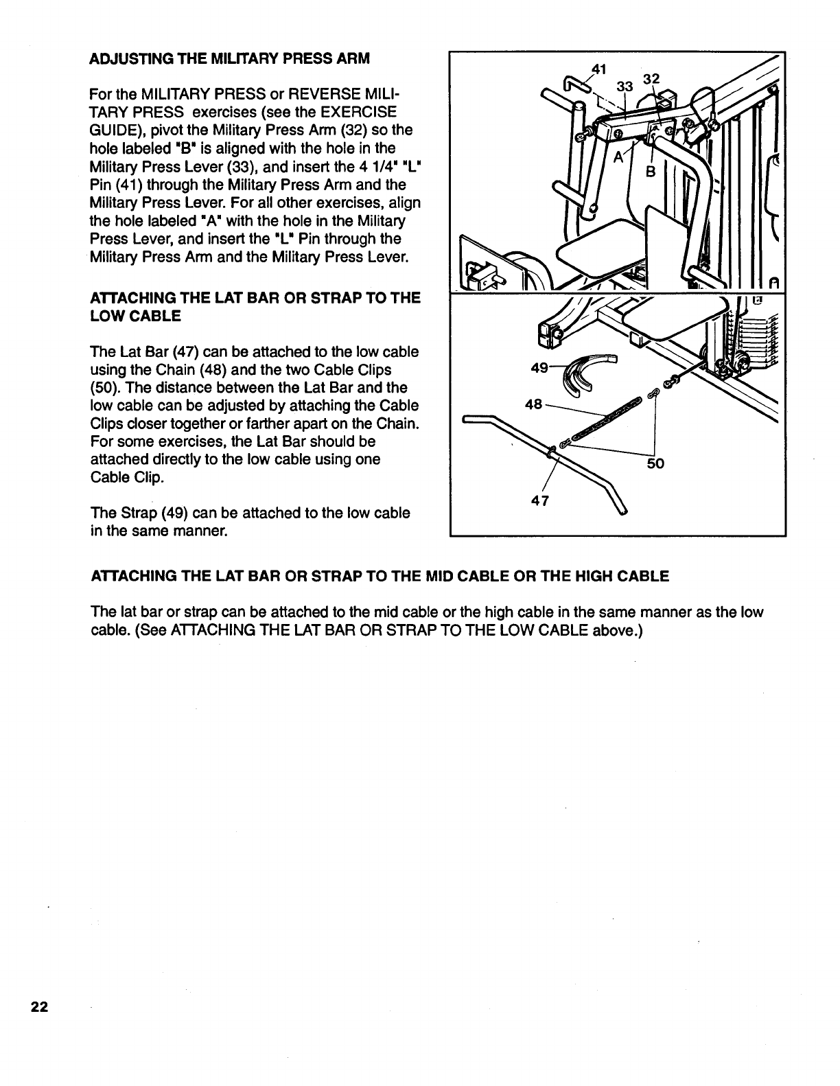 cable. (See A'I-I'ACHING THE LAT BAR OR STRAP TO THE LOW CABLE above.)