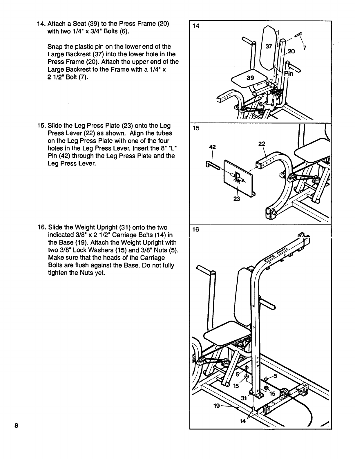 remove the 8" "L" Pin (42). Move the Leg Press