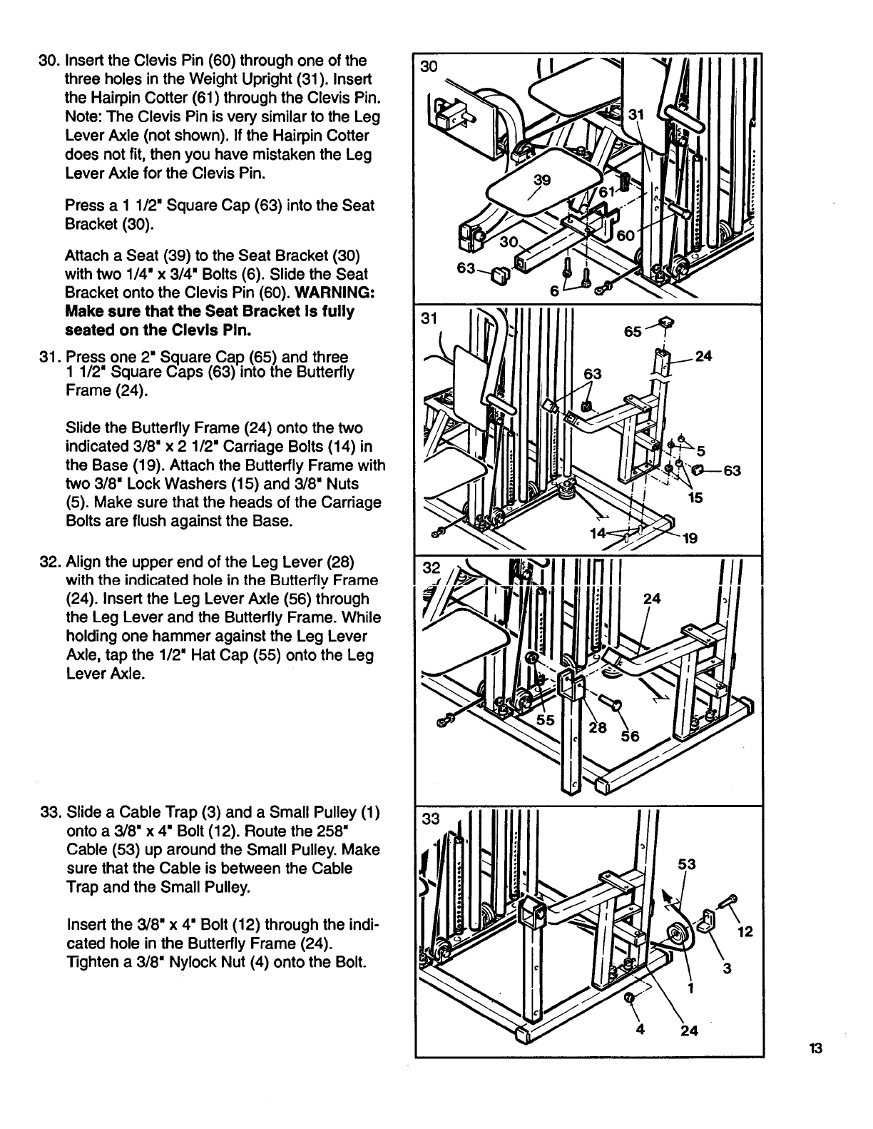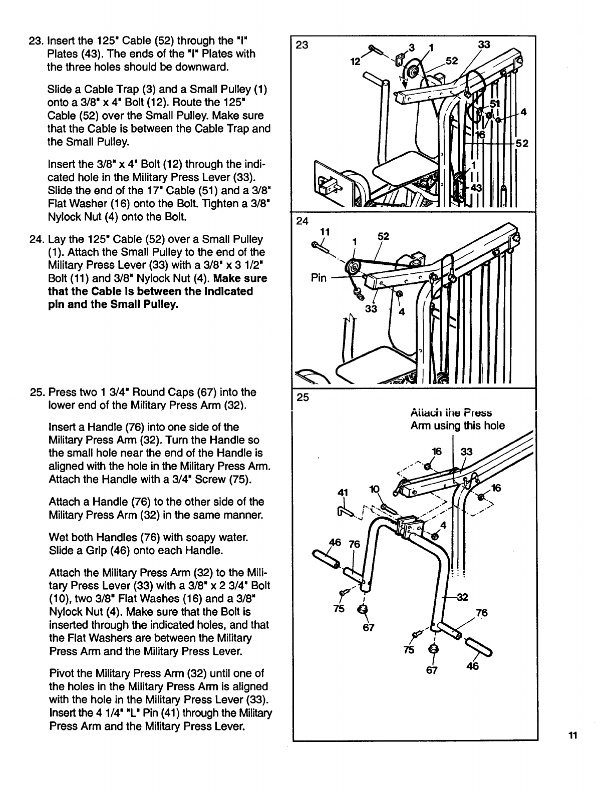 Military Press Lever (33), and insert the 4 1/4' "L"