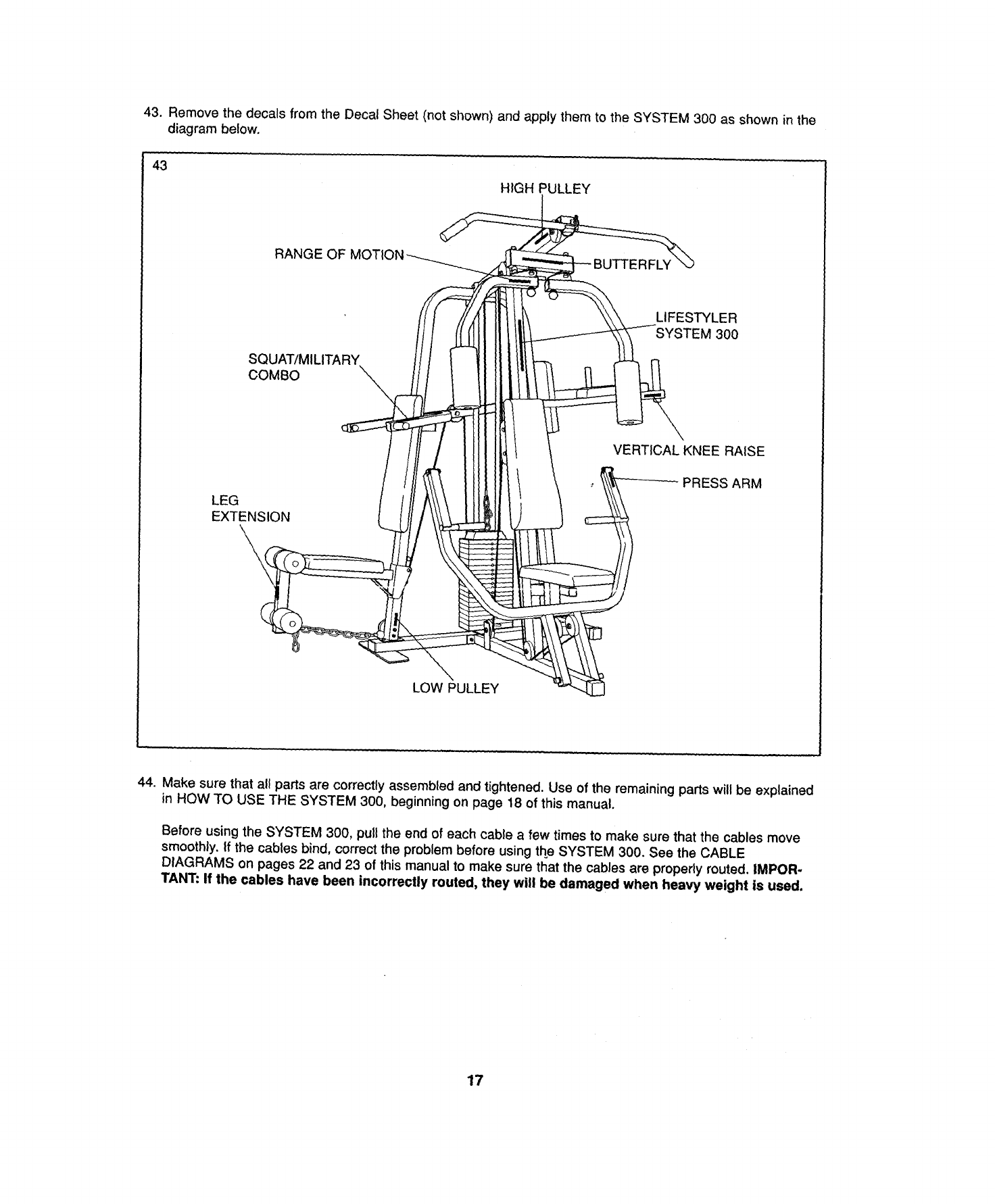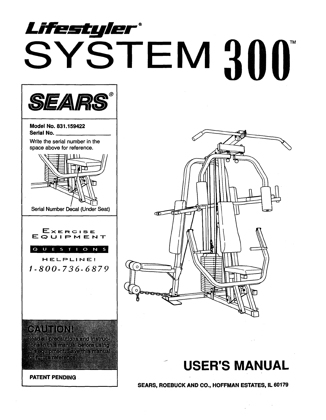 User Manual: Lifestyler 831159422 831159422 LIFESTYLER LIFESTYLER SYSTEM 300 - Manuals and Guides View the owners manual for your LIFESTYLER LIFESTYLER SYSTEM 300 #831159422. Home:Fitness Equipment Parts:Lifestyler Parts:Lifestyler LIFESTYLER SYSTEM 300 Manual