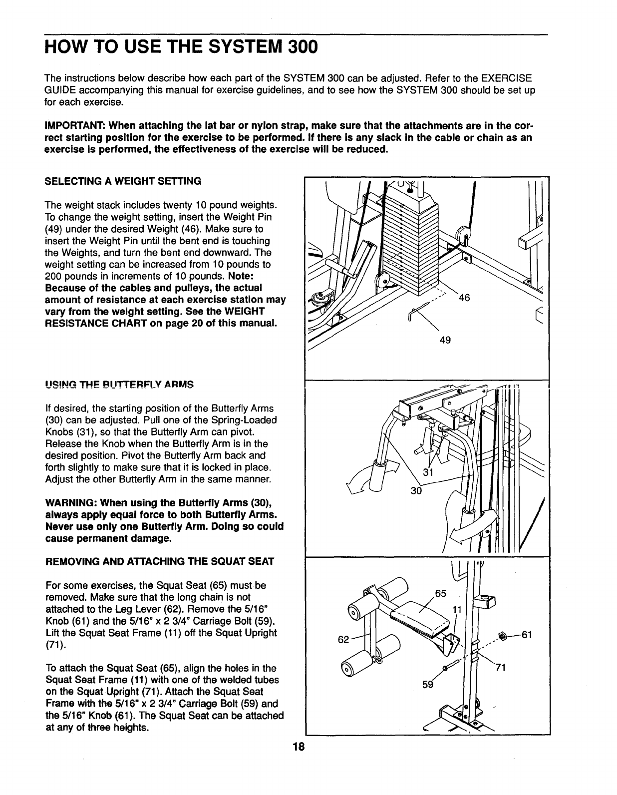 SYSTEM 300 Weight System are listed on a decal attached to the