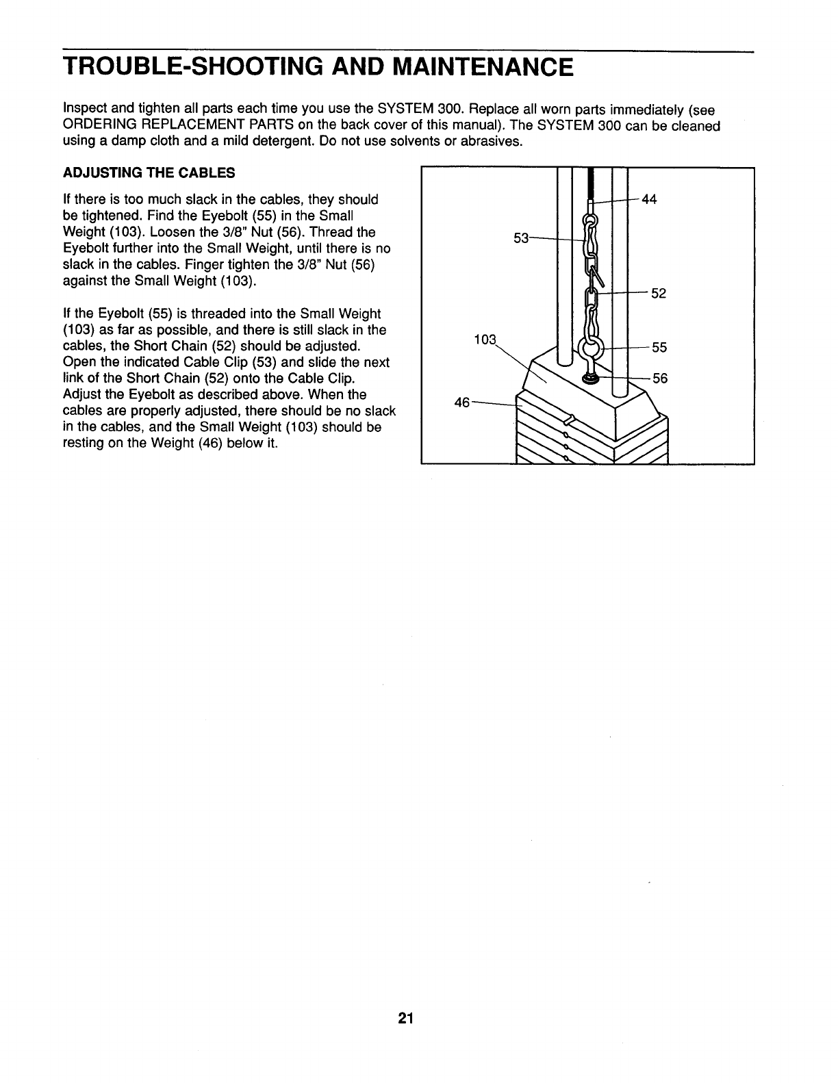 TROUBLE-SHOOTING AND MAINTENANCE ................................................. 21